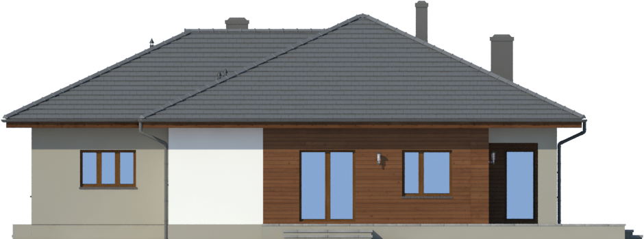 Graficzne opracowanie rzutów poglądowych widocznych na karcie projektu zostało wykonane przez Extradom.pl. Prezentowane przez Extradom.pl wizualizacje wykonane zostały przez autora projektu i należy poczytywać je jedynie za przykład i propozycję wykończenia, wizję architektoniczną autora projektu. Ostateczne wykończenie budynku może nastąpić na wiele sposobów. Szczegółowe rozwiązania zastosowane w oferowanej dokumentacji - w tym również ilość, lokalizacje i wygląd okien, drzwi, kominów - mogą w niewielkim stopniu różnić się od prezentowanej wizualizacji budynku.