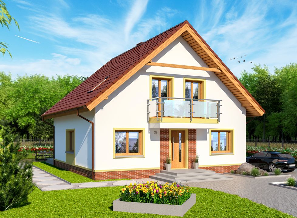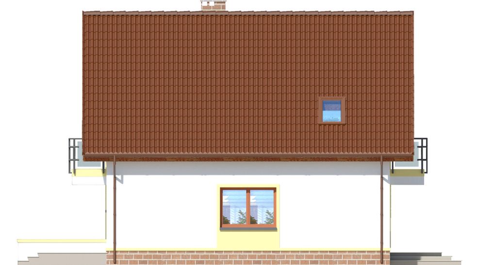 Graficzne opracowanie rzutów poglądowych widocznych na karcie projektu zostało wykonane przez Extradom.pl. Prezentowane przez Extradom.pl wizualizacje wykonane zostały przez autora projektu i należy poczytywać je jedynie za przykład i propozycję wykończenia, wizję architektoniczną autora projektu. Ostateczne wykończenie budynku może nastąpić na wiele sposobów. Szczegółowe rozwiązania zastosowane w oferowanej dokumentacji - w tym również ilość, lokalizacje i wygląd okien, drzwi, kominów - mogą w niewielkim stopniu różnić się od prezentowanej wizualizacji budynku.
