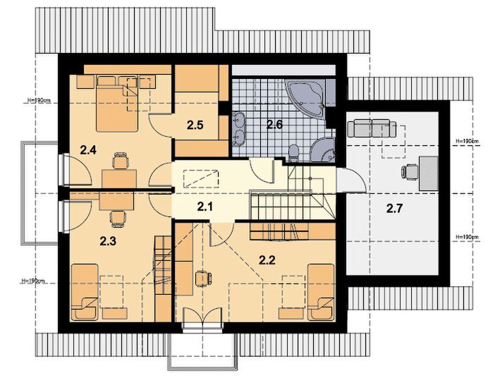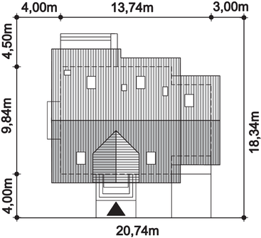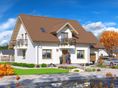 Graficzne opracowanie rzutów poglądowych widocznych na karcie projektu zostało wykonane przez Extradom.pl. Prezentowane przez Extradom.pl wizualizacje wykonane zostały przez autora projektu i należy poczytywać je jedynie za przykład i propozycję wykończenia, wizję architektoniczną autora projektu. Ostateczne wykończenie budynku może nastąpić na wiele sposobów. Szczegółowe rozwiązania zastosowane w oferowanej dokumentacji - w tym również ilość, lokalizacje i wygląd okien, drzwi, kominów - mogą w niewielkim stopniu różnić się od prezentowanej wizualizacji budynku.