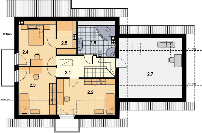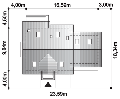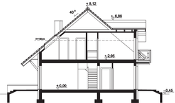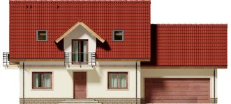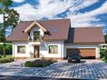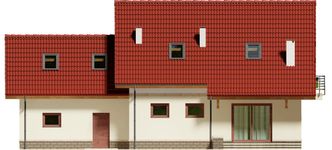 Graficzne opracowanie rzutów poglądowych widocznych na karcie projektu zostało wykonane przez Extradom.pl. Prezentowane przez Extradom.pl wizualizacje wykonane zostały przez autora projektu i należy poczytywać je jedynie za przykład i propozycję wykończenia, wizję architektoniczną autora projektu. Ostateczne wykończenie budynku może nastąpić na wiele sposobów. Szczegółowe rozwiązania zastosowane w oferowanej dokumentacji - w tym również ilość, lokalizacje i wygląd okien, drzwi, kominów - mogą w niewielkim stopniu różnić się od prezentowanej wizualizacji budynku.