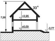 Ściany: 3-warstwowe - pustak ceramiczny. Stropy: gęstożebrowe. Dach: dachówka ceramiczna CREATON, kąt nachylenia 33° i 13°. Ogrzewanie: gazowe, olejowe.