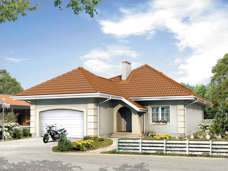 Graficzne opracowanie rzutów poglądowych widocznych na karcie projektu zostało wykonane przez Extradom.pl. Prezentowane przez Extradom.pl wizualizacje wykonane zostały przez autora projektu i należy poczytywać je jedynie za przykład i propozycję wykończenia, wizję architektoniczną autora projektu. Ostateczne wykończenie budynku może nastąpić na wiele sposobów. Szczegółowe rozwiązania zastosowane w oferowanej dokumentacji - w tym również ilość, lokalizacje i wygląd okien, drzwi, kominów - mogą w niewielkim stopniu różnić się od prezentowanej wizualizacji budynku.