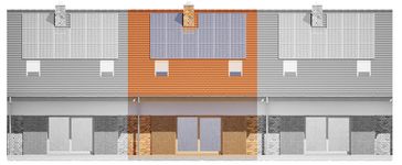 Graficzne opracowanie rzutów poglądowych widocznych na karcie projektu zostało wykonane przez Extradom.pl. Prezentowane przez Extradom.pl wizualizacje wykonane zostały przez autora projektu i należy poczytywać je jedynie za przykład i propozycję wykończenia, wizję architektoniczną autora projektu. Ostateczne wykończenie budynku może nastąpić na wiele sposobów. Szczegółowe rozwiązania zastosowane w oferowanej dokumentacji - w tym również ilość, lokalizacje i wygląd okien, drzwi, kominów - mogą w niewielkim stopniu różnić się od prezentowanej wizualizacji budynku.