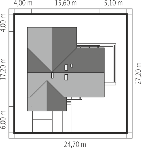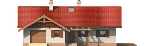 Graficzne opracowanie rzutów poglądowych widocznych na karcie projektu zostało wykonane przez Extradom.pl. Prezentowane przez Extradom.pl wizualizacje wykonane zostały przez autora projektu i należy poczytywać je jedynie za przykład i propozycję wykończenia, wizję architektoniczną autora projektu. Ostateczne wykończenie budynku może nastąpić na wiele sposobów. Szczegółowe rozwiązania zastosowane w oferowanej dokumentacji - w tym również ilość, lokalizacje i wygląd okien, drzwi, kominów - mogą w niewielkim stopniu różnić się od prezentowanej wizualizacji budynku.
