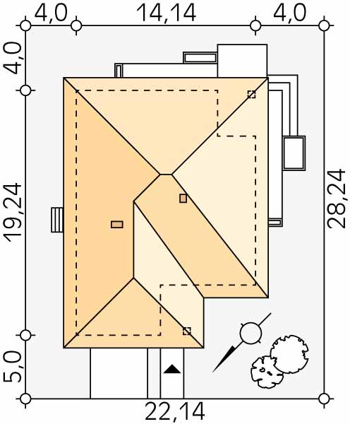 Ściany: 2-warstwowe - bloczek z betonu komórkowego SOLBET 24 cm + styropian Termo Organika. Stropy: System Stropowy TECHNOBETON. Dach: dachówka ceramiczna CREATON, kąt nachylenia 25° i 30°. Dostępna wersja kąt 30°. Ogrzewanie: gazowe, na paliwo stałe.