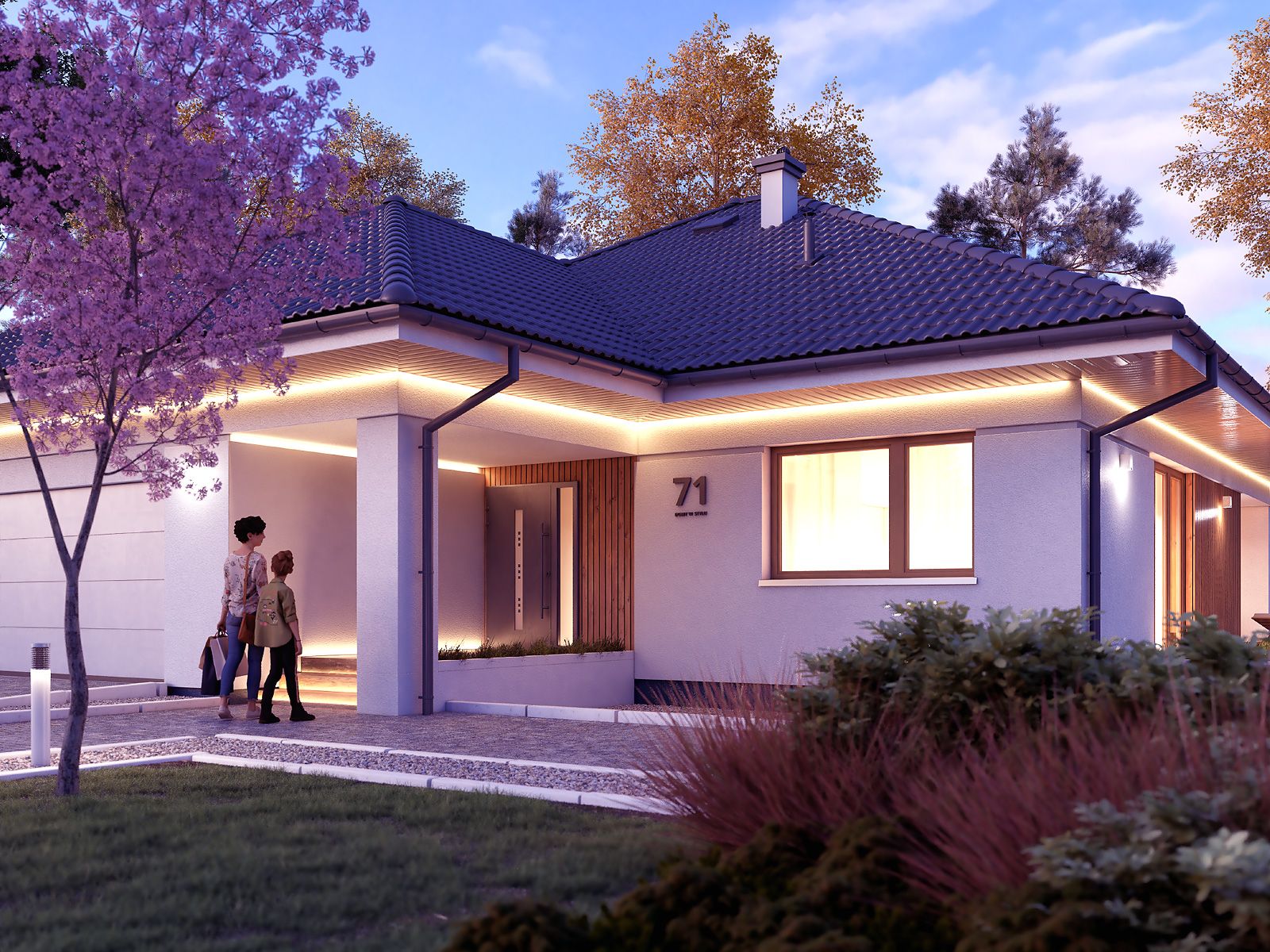 Graficzne opracowanie rzutów poglądowych widocznych na karcie projektu zostało wykonane przez Extradom.pl. Prezentowane przez Extradom.pl wizualizacje wykonane zostały przez autora projektu i należy poczytywać je jedynie za przykład i propozycję wykończenia, wizję architektoniczną autora projektu. Ostateczne wykończenie budynku może nastąpić na wiele sposobów. Szczegółowe rozwiązania zastosowane w oferowanej dokumentacji - w tym również ilość, lokalizacje i wygląd okien, drzwi, kominów - mogą w niewielkim stopniu różnić się od prezentowanej wizualizacji budynku.
