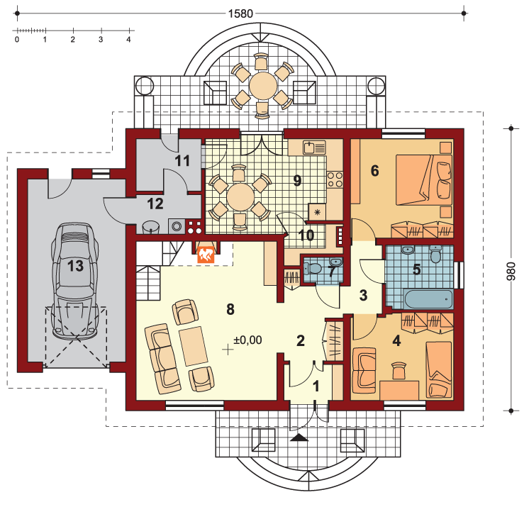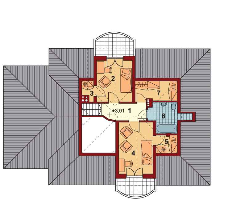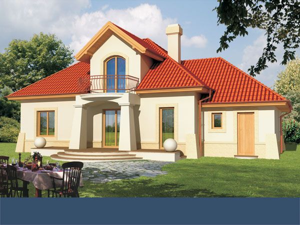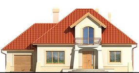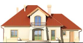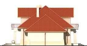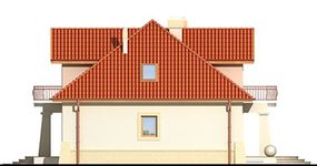 Graficzne opracowanie rzutów poglądowych widocznych na karcie projektu zostało wykonane przez Extradom.pl. Prezentowane przez Extradom.pl wizualizacje wykonane zostały przez autora projektu i należy poczytywać je jedynie za przykład i propozycję wykończenia, wizję architektoniczną autora projektu. Ostateczne wykończenie budynku może nastąpić na wiele sposobów. Szczegółowe rozwiązania zastosowane w oferowanej dokumentacji - w tym również ilość, lokalizacje i wygląd okien, drzwi, kominów - mogą w niewielkim stopniu różnić się od prezentowanej wizualizacji budynku.