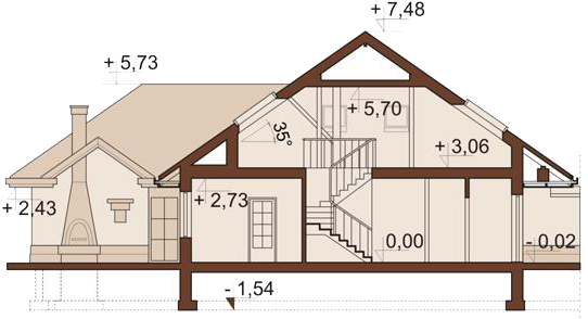 Konstrukcja ściany fundamentowe - bloczek betonowy; ściany zewnętrzne - beton komórkowy gr. 24cm + styropian ; ściany wewnętrzne - bloczek silikatowy gr. 24cm; strop - gęstożebrowy; konstrukcja dachu - drewniana . Instalacje W projekcie przewidziano instalacjie: c.o. i c.w.u. zasilane kotłem na biomasę, grzejniki płytowe, instalacje wodno-kanalizacyjna oraz elektryczne, wentylacja grawitacyjna. W instalacjach elektrycznych jest przewidziana mozliwość podłaczenia paneli fotowoltaicznych. Do kompletu dołączono projekt instalacji gazowej. Wykończenie pokrycie dachowe - dachówka cementowa(w ramach adaptacji inny materiał); ścianki działowe na parterze-bloczek silikatowy; na poddaszu z płyt gipsowo-kartonowych; schody drewniane - zabiegowe; okna - PVC, okna dachowe i wyłaz dachowy.