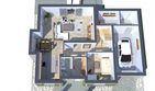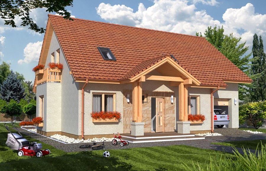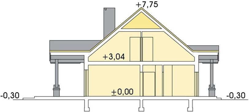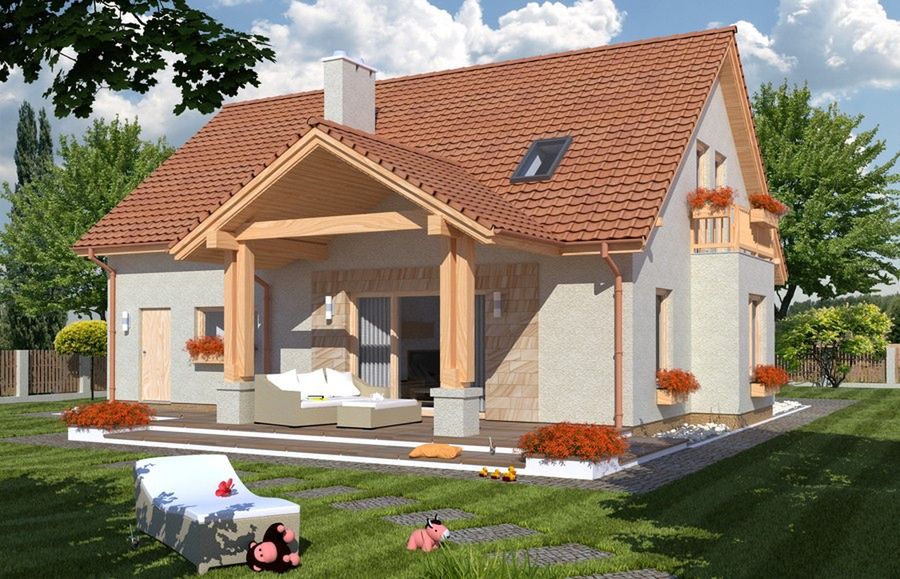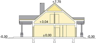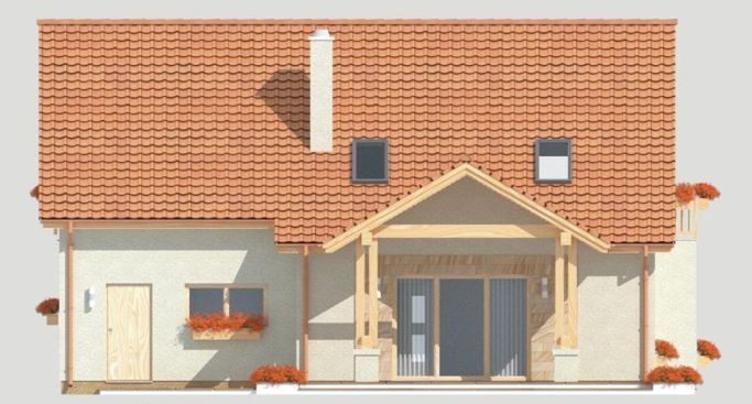 Graficzne opracowanie rzutów poglądowych widocznych na karcie projektu zostało wykonane przez Extradom.pl. Prezentowane przez Extradom.pl wizualizacje wykonane zostały przez autora projektu i należy poczytywać je jedynie za przykład i propozycję wykończenia, wizję architektoniczną autora projektu. Ostateczne wykończenie budynku może nastąpić na wiele sposobów. Szczegółowe rozwiązania zastosowane w oferowanej dokumentacji - w tym również ilość, lokalizacje i wygląd okien, drzwi, kominów - mogą w niewielkim stopniu różnić się od prezentowanej wizualizacji budynku.
