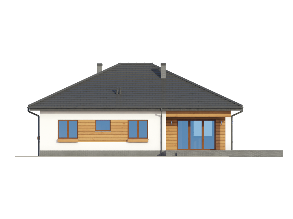Graficzne opracowanie rzutów poglądowych widocznych na karcie projektu zostało wykonane przez Extradom.pl. Prezentowane przez Extradom.pl wizualizacje wykonane zostały przez autora projektu i należy poczytywać je jedynie za przykład i propozycję wykończenia, wizję architektoniczną autora projektu. Ostateczne wykończenie budynku może nastąpić na wiele sposobów. Szczegółowe rozwiązania zastosowane w oferowanej dokumentacji - w tym również ilość, lokalizacje i wygląd okien, drzwi, kominów - mogą w niewielkim stopniu różnić się od prezentowanej wizualizacji budynku.