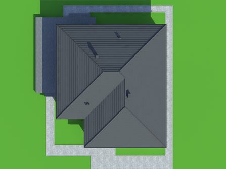 Graficzne opracowanie rzutów poglądowych widocznych na karcie projektu zostało wykonane przez Extradom.pl. Prezentowane przez Extradom.pl wizualizacje wykonane zostały przez autora projektu i należy poczytywać je jedynie za przykład i propozycję wykończenia, wizję architektoniczną autora projektu. Ostateczne wykończenie budynku może nastąpić na wiele sposobów. Szczegółowe rozwiązania zastosowane w oferowanej dokumentacji - w tym również ilość, lokalizacje i wygląd okien, drzwi, kominów - mogą w niewielkim stopniu różnić się od prezentowanej wizualizacji budynku.