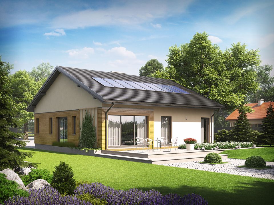 Ściany zewnętrzne: murowane, dwuwarstwowe, bloczki keramzytobetonowe firmy Termat 24 cm, ocieplenie wełna mineralna 20 cm. Ściany wewnętrzne: nośne i działowe murowane, bloczki keramzytobetonowe firmy Termat 24 cm i 10 cm. Strop: gęstożebrowy Teriva,ocieplenie wełna mineralna Isover 30 cm. Dach: konstrukcja drewniana, dachówka ceramiczna płaska firmy Röben, więźba dachowa dostępna również w systemie prefabrykacji drewnianej. Ogrzewanie: kocioł gazowy kondensacyjny firmy Viessmann, rozprowadzenie ciepła: grzejniki firmy Purmo. Wentylacja: grawitacyjna. Elewacje: tynk cienkowarstwowy mineralny w kolorze kremowym, okładzina drewniana. Stolarka: drewniana, PVC lub aluminiowa, rolety zewnętrzne w systemie CleverBox firmy BeClever.