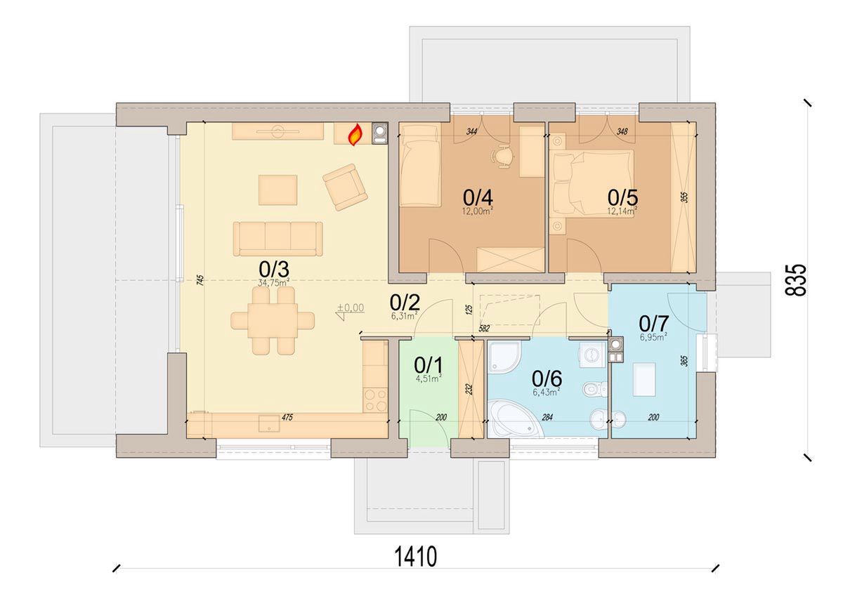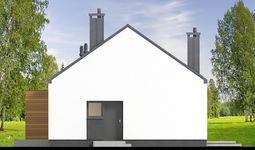 Graficzne opracowanie rzutów poglądowych widocznych na karcie projektu zostało wykonane przez Extradom.pl. Prezentowane przez Extradom.pl wizualizacje wykonane zostały przez autora projektu i należy poczytywać je jedynie za przykład i propozycję wykończenia, wizję architektoniczną autora projektu. Ostateczne wykończenie budynku może nastąpić na wiele sposobów. Szczegółowe rozwiązania zastosowane w oferowanej dokumentacji - w tym również ilość, lokalizacje i wygląd okien, drzwi, kominów - mogą w niewielkim stopniu różnić się od prezentowanej wizualizacji budynku.