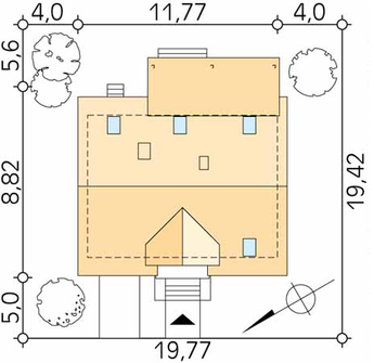 Graficzne opracowanie rzutów poglądowych widocznych na karcie projektu zostało wykonane przez Extradom.pl. Prezentowane przez Extradom.pl wizualizacje wykonane zostały przez autora projektu i należy poczytywać je jedynie za przykład i propozycję wykończenia, wizję architektoniczną autora projektu. Ostateczne wykończenie budynku może nastąpić na wiele sposobów. Szczegółowe rozwiązania zastosowane w oferowanej dokumentacji - w tym również ilość, lokalizacje i wygląd okien, drzwi, kominów - mogą w niewielkim stopniu różnić się od prezentowanej wizualizacji budynku.