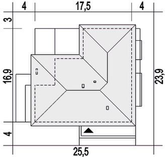 Graficzne opracowanie rzutów poglądowych widocznych na karcie projektu zostało wykonane przez Extradom.pl. Prezentowane przez Extradom.pl wizualizacje wykonane zostały przez autora projektu i należy poczytywać je jedynie za przykład i propozycję wykończenia, wizję architektoniczną autora projektu. Ostateczne wykończenie budynku może nastąpić na wiele sposobów. Szczegółowe rozwiązania zastosowane w oferowanej dokumentacji - w tym również ilość, lokalizacje i wygląd okien, drzwi, kominów - mogą w niewielkim stopniu różnić się od prezentowanej wizualizacji budynku.