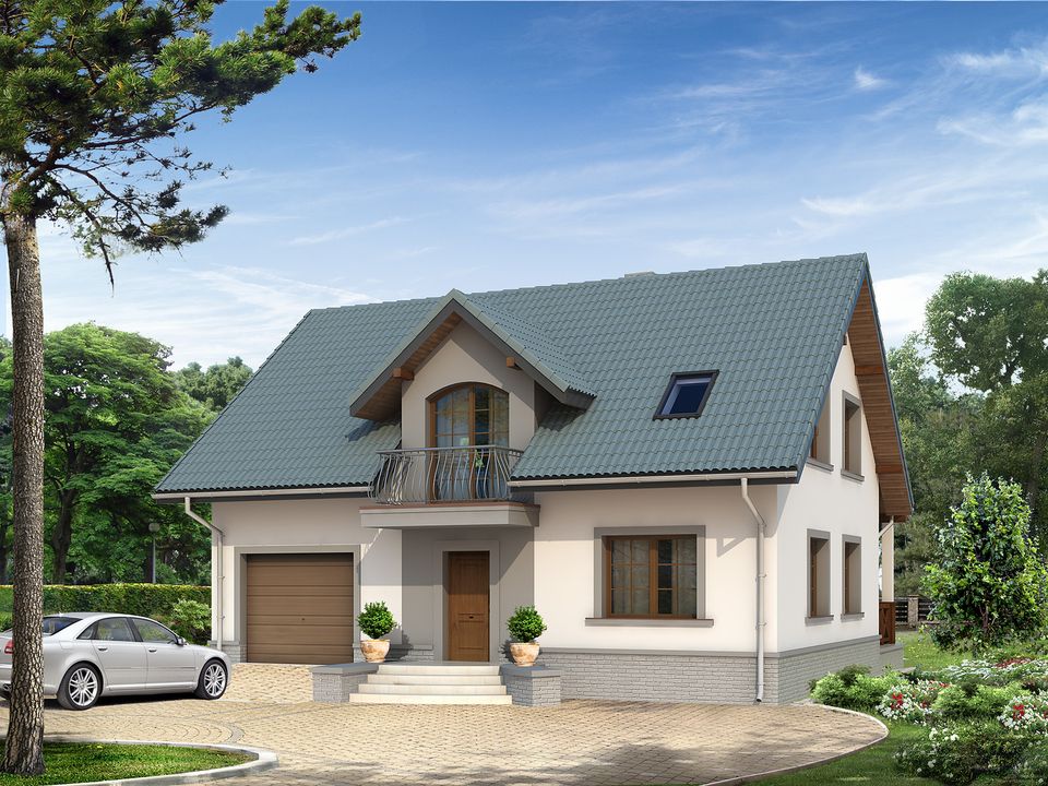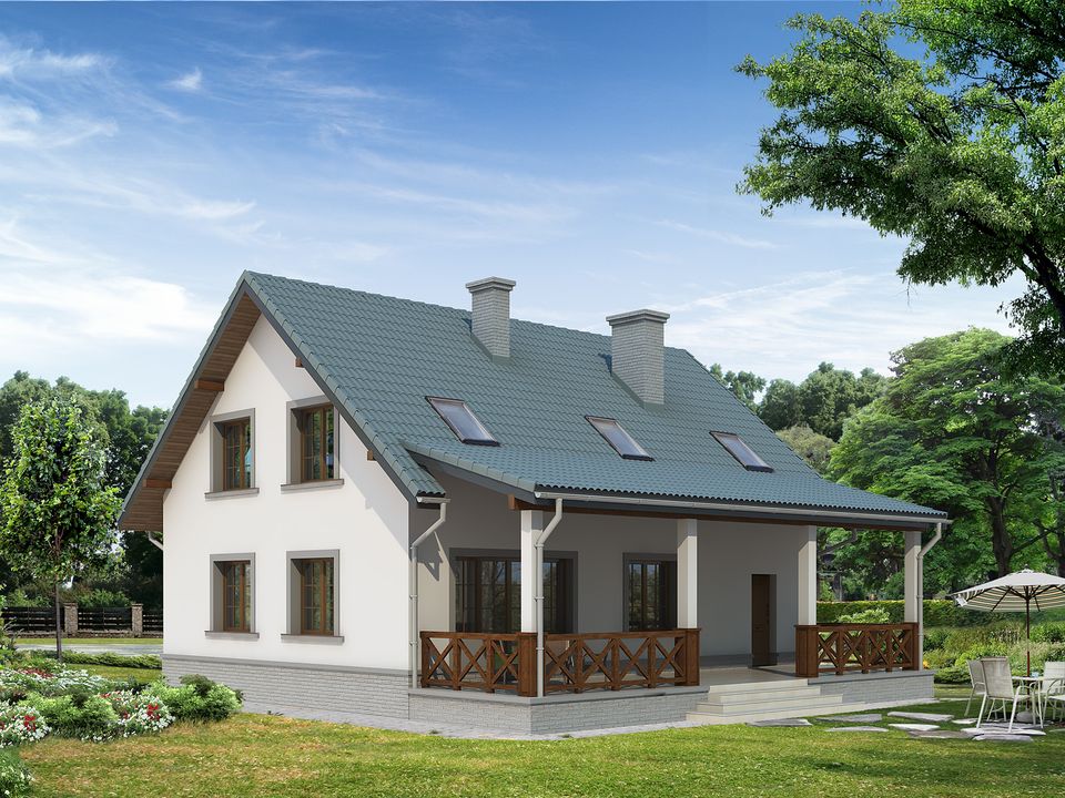 Graficzne opracowanie rzutów poglądowych widocznych na karcie projektu zostało wykonane przez Extradom.pl. Prezentowane przez Extradom.pl wizualizacje wykonane zostały przez autora projektu i należy poczytywać je jedynie za przykład i propozycję wykończenia, wizję architektoniczną autora projektu. Ostateczne wykończenie budynku może nastąpić na wiele sposobów. Szczegółowe rozwiązania zastosowane w oferowanej dokumentacji - w tym również ilość, lokalizacje i wygląd okien, drzwi, kominów - mogą w niewielkim stopniu różnić się od prezentowanej wizualizacji budynku.