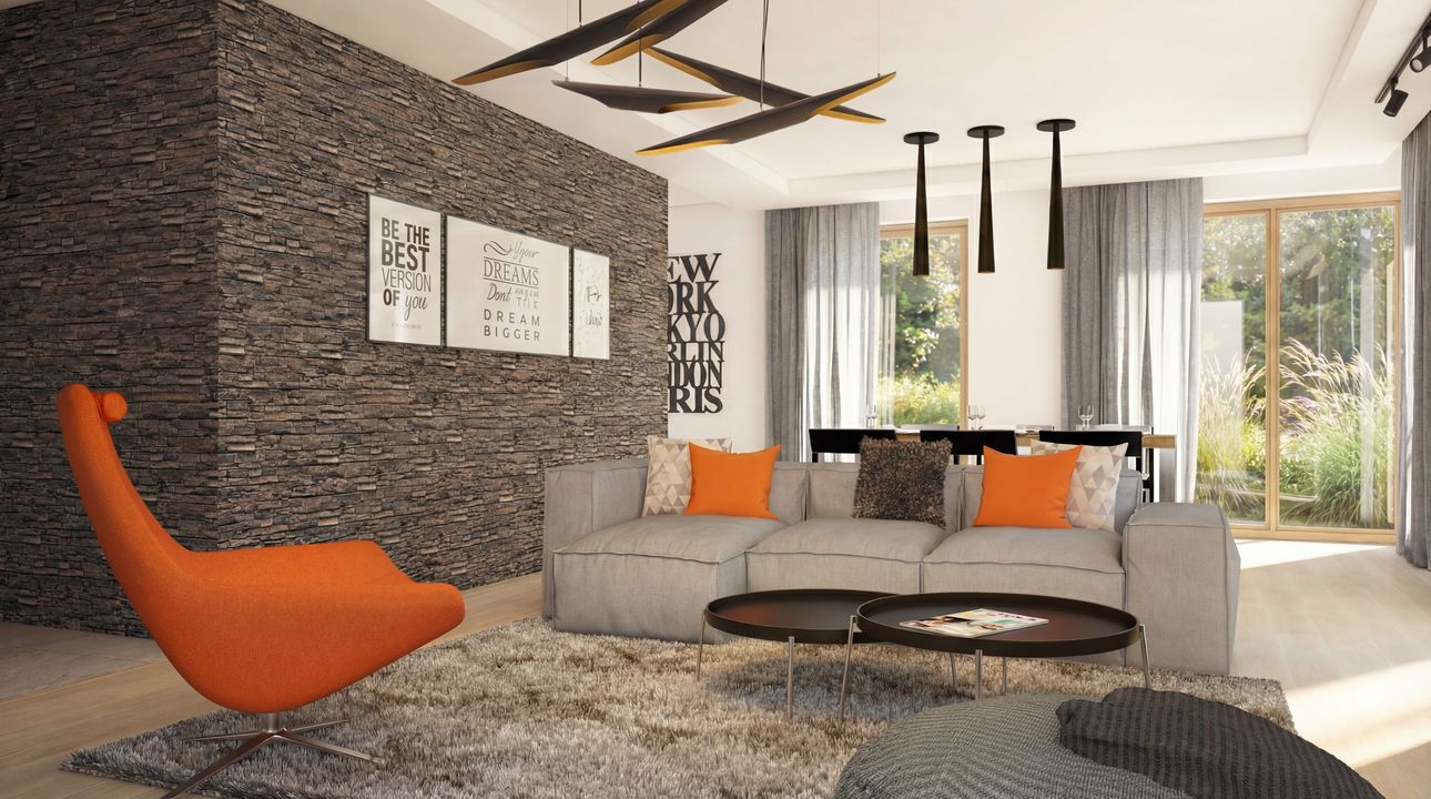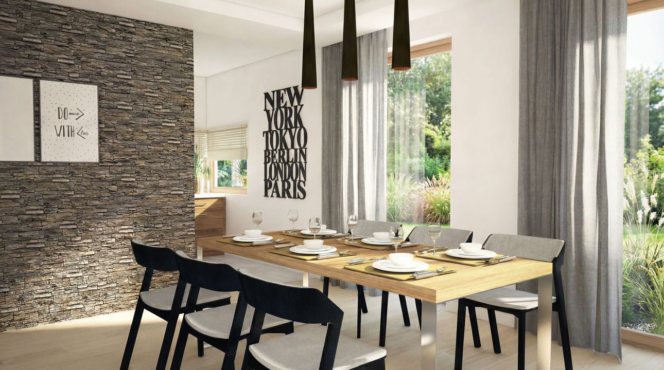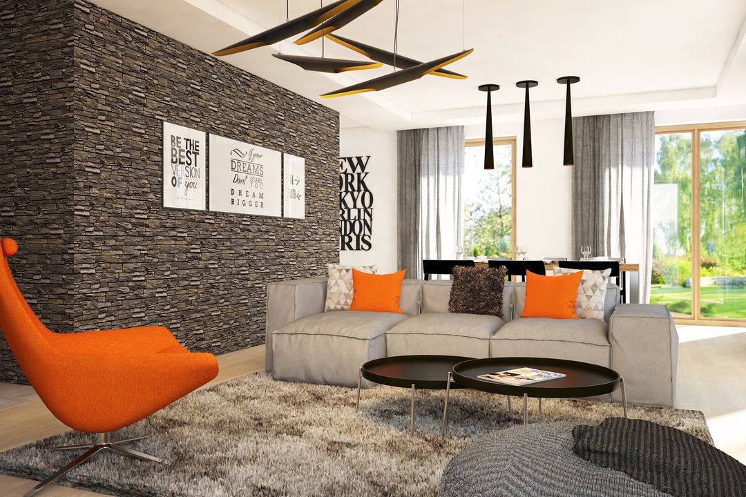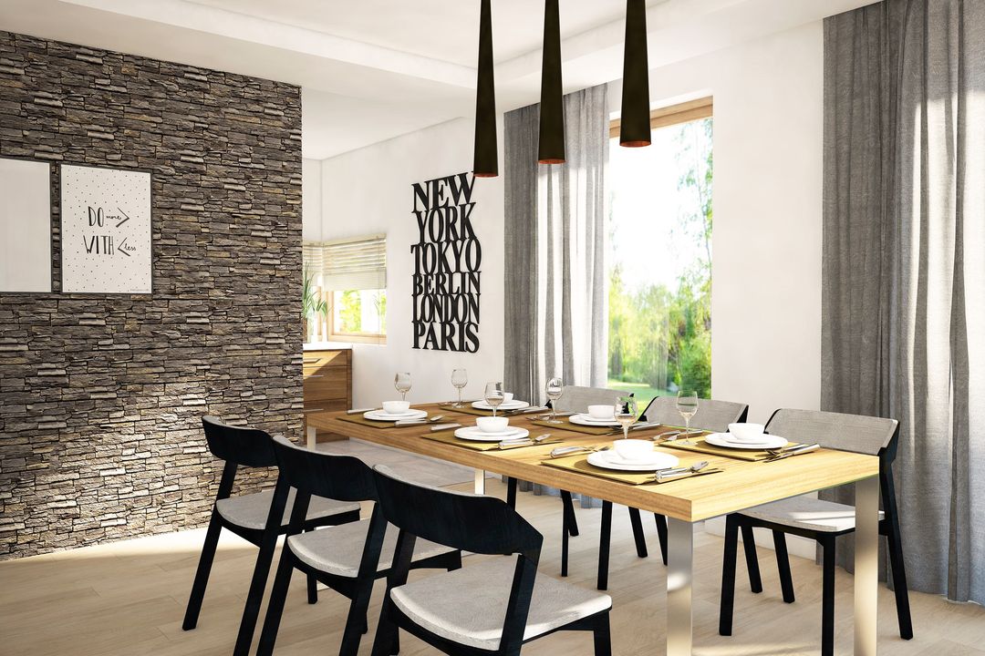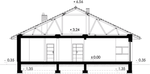 Graficzne opracowanie rzutów poglądowych widocznych na karcie projektu zostało wykonane przez Extradom.pl. Prezentowane przez Extradom.pl wizualizacje wykonane zostały przez autora projektu i należy poczytywać je jedynie za przykład i propozycję wykończenia, wizję architektoniczną autora projektu. Ostateczne wykończenie budynku może nastąpić na wiele sposobów. Szczegółowe rozwiązania zastosowane w oferowanej dokumentacji - w tym również ilość, lokalizacje i wygląd okien, drzwi, kominów - mogą w niewielkim stopniu różnić się od prezentowanej wizualizacji budynku.