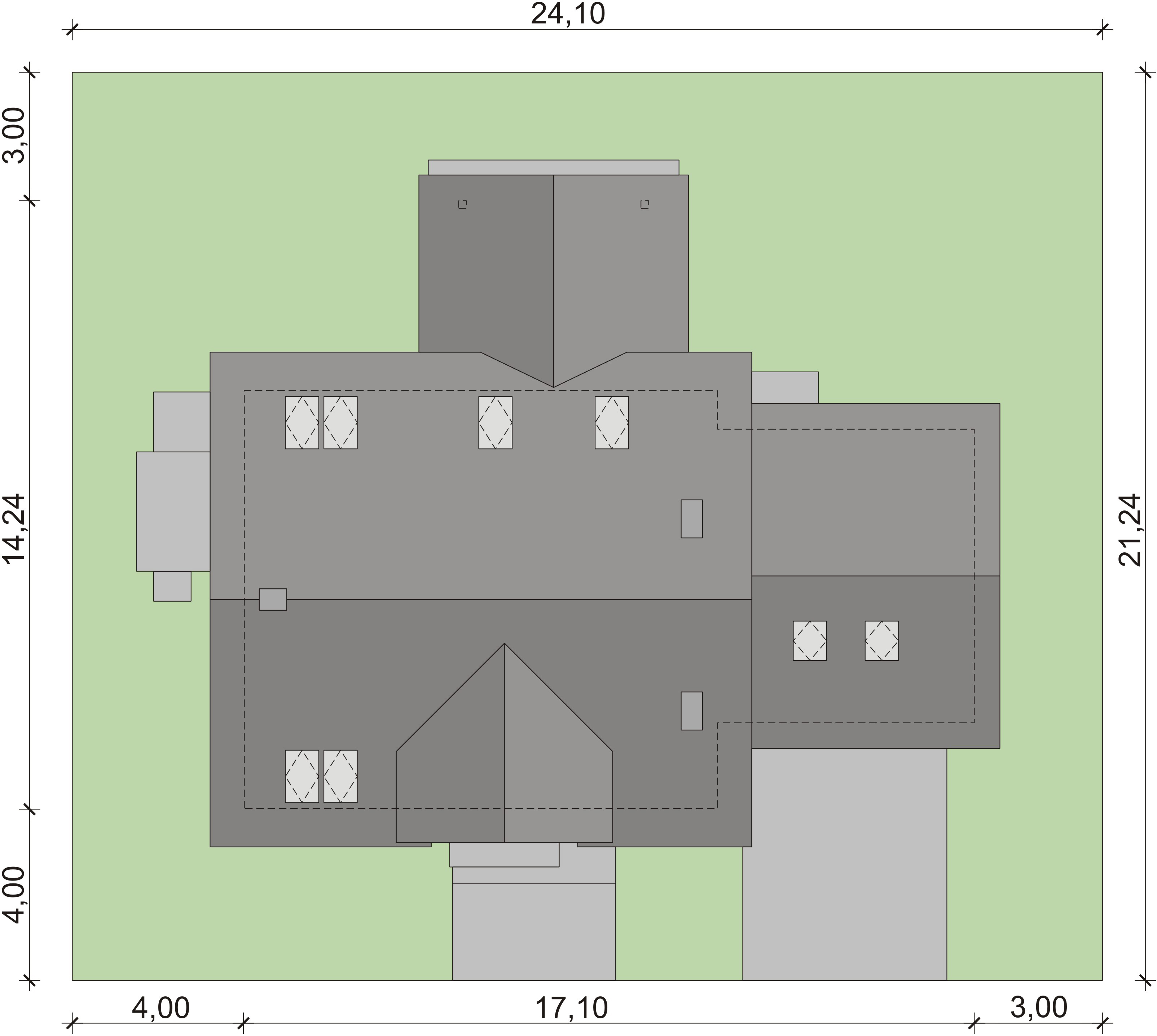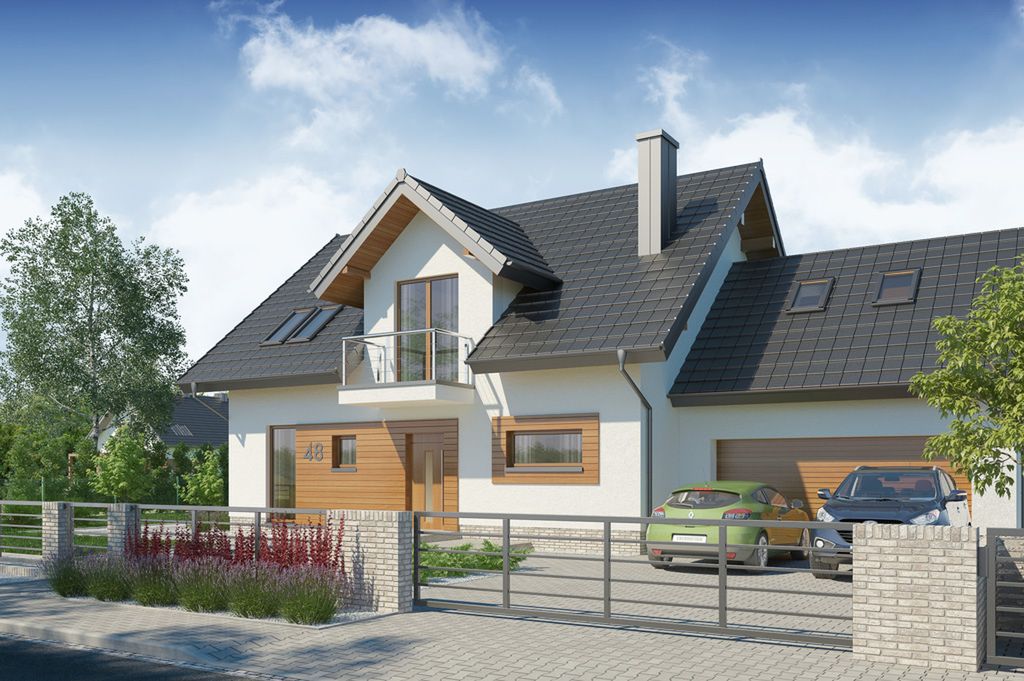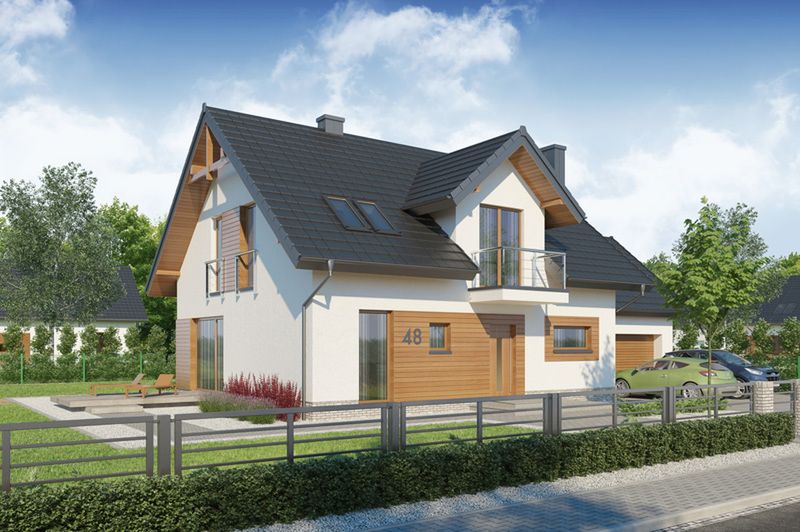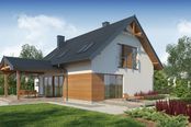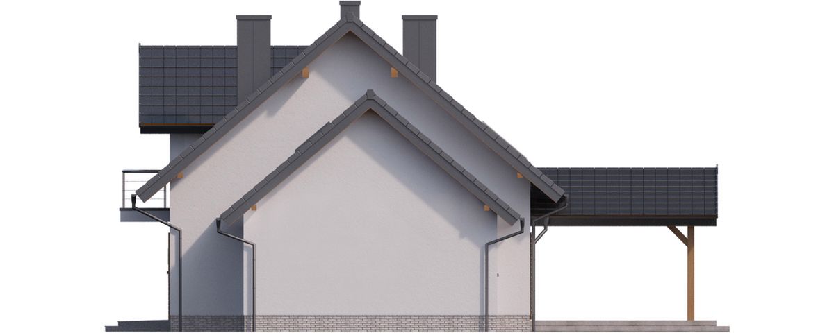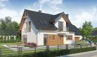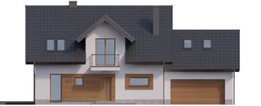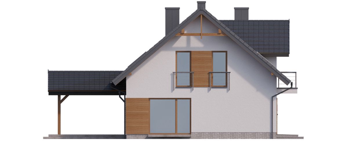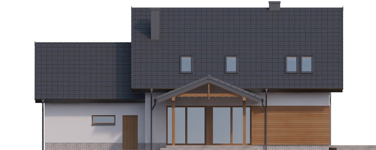 Graficzne opracowanie rzutów poglądowych widocznych na karcie projektu zostało wykonane przez Extradom.pl. Prezentowane przez Extradom.pl wizualizacje wykonane zostały przez autora projektu i należy poczytywać je jedynie za przykład i propozycję wykończenia, wizję architektoniczną autora projektu. Ostateczne wykończenie budynku może nastąpić na wiele sposobów. Szczegółowe rozwiązania zastosowane w oferowanej dokumentacji - w tym również ilość, lokalizacje i wygląd okien, drzwi, kominów - mogą w niewielkim stopniu różnić się od prezentowanej wizualizacji budynku.