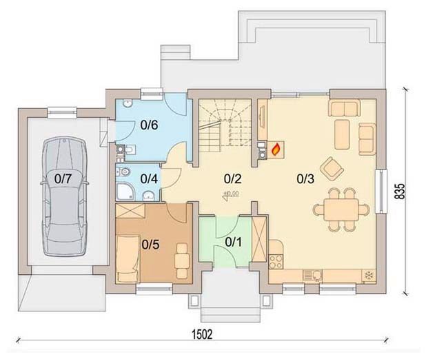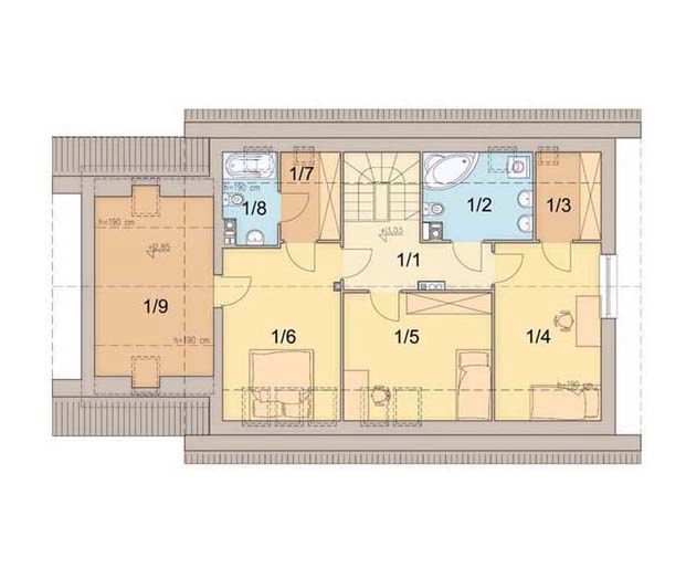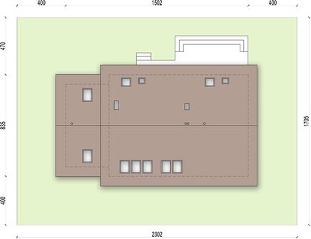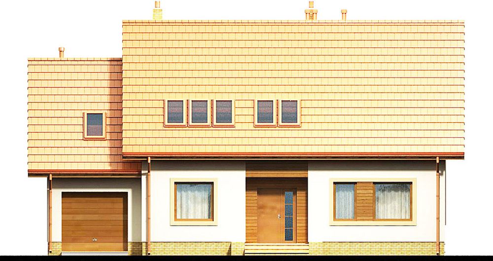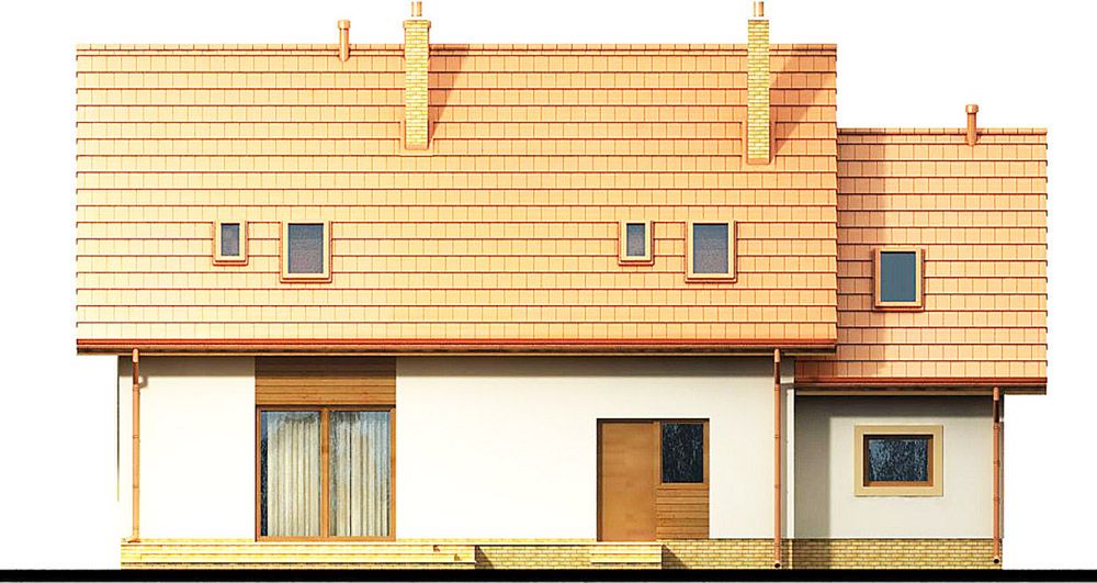 Graficzne opracowanie rzutów poglądowych widocznych na karcie projektu zostało wykonane przez Extradom.pl. Prezentowane przez Extradom.pl wizualizacje wykonane zostały przez autora projektu i należy poczytywać je jedynie za przykład i propozycję wykończenia, wizję architektoniczną autora projektu. Ostateczne wykończenie budynku może nastąpić na wiele sposobów. Szczegółowe rozwiązania zastosowane w oferowanej dokumentacji - w tym również ilość, lokalizacje i wygląd okien, drzwi, kominów - mogą w niewielkim stopniu różnić się od prezentowanej wizualizacji budynku.