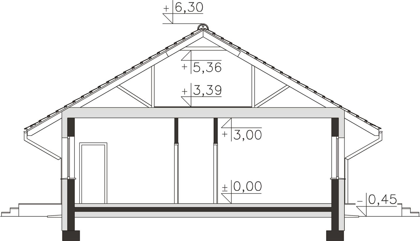 Fundamenty - rozwiązanie o podwyższonej izolacji termicznej. Ściany zewnętrzne - Bloczek silikatowy 24 cm + styropian 20 cm. Dach - wiązary prefabrykowane. Ogrzewanie - c.o. podłogowe + c.w.u. - pompa ciepła powietrze-woda. Wentylacja - rekuperacja.