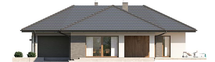 Graficzne opracowanie rzutów poglądowych widocznych na karcie projektu zostało wykonane przez Extradom.pl. Prezentowane przez Extradom.pl wizualizacje wykonane zostały przez autora projektu i należy poczytywać je jedynie za przykład i propozycję wykończenia, wizję architektoniczną autora projektu. Ostateczne wykończenie budynku może nastąpić na wiele sposobów. Szczegółowe rozwiązania zastosowane w oferowanej dokumentacji - w tym również ilość, lokalizacje i wygląd okien, drzwi, kominów - mogą w niewielkim stopniu różnić się od prezentowanej wizualizacji budynku.