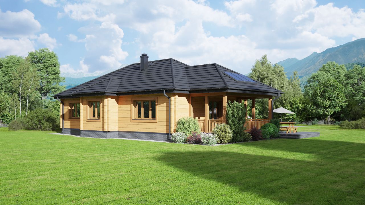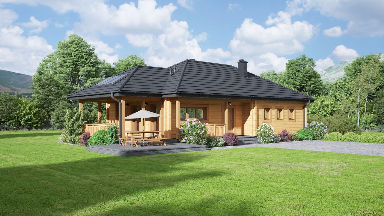 Strop: drewniany. Pokrycie dachu: dachówka gontopodobna Gerard Corona. Ściany zewnętrzne: płazy drewniane + wełna mineralna + deska. Ściany wewnętrzne: płazy drewniane. Typ ogrzewania: kocioł na paliwo stałe. Instalacje dodatkowe: instalacja solarna.