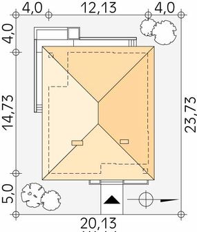 Graficzne opracowanie rzutów poglądowych widocznych na karcie projektu zostało wykonane przez Extradom.pl. Prezentowane przez Extradom.pl wizualizacje wykonane zostały przez autora projektu i należy poczytywać je jedynie za przykład i propozycję wykończenia, wizję architektoniczną autora projektu. Ostateczne wykończenie budynku może nastąpić na wiele sposobów. Szczegółowe rozwiązania zastosowane w oferowanej dokumentacji - w tym również ilość, lokalizacje i wygląd okien, drzwi, kominów - mogą w niewielkim stopniu różnić się od prezentowanej wizualizacji budynku.