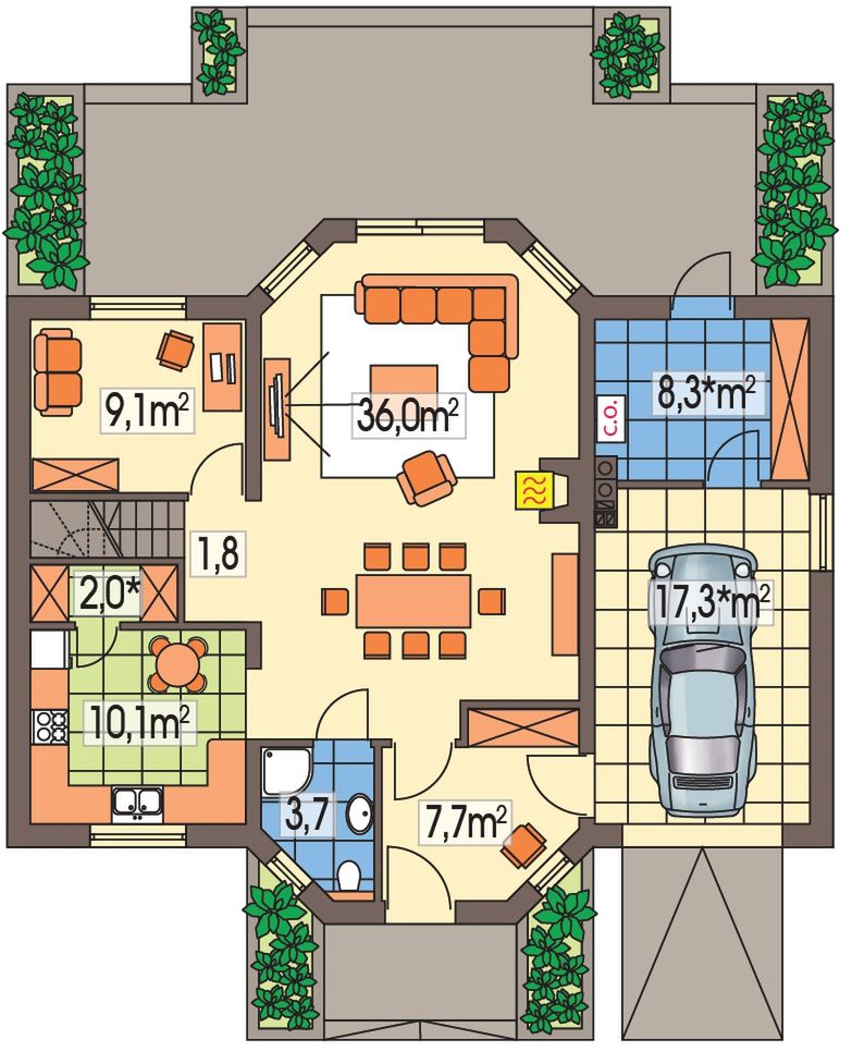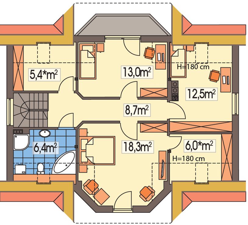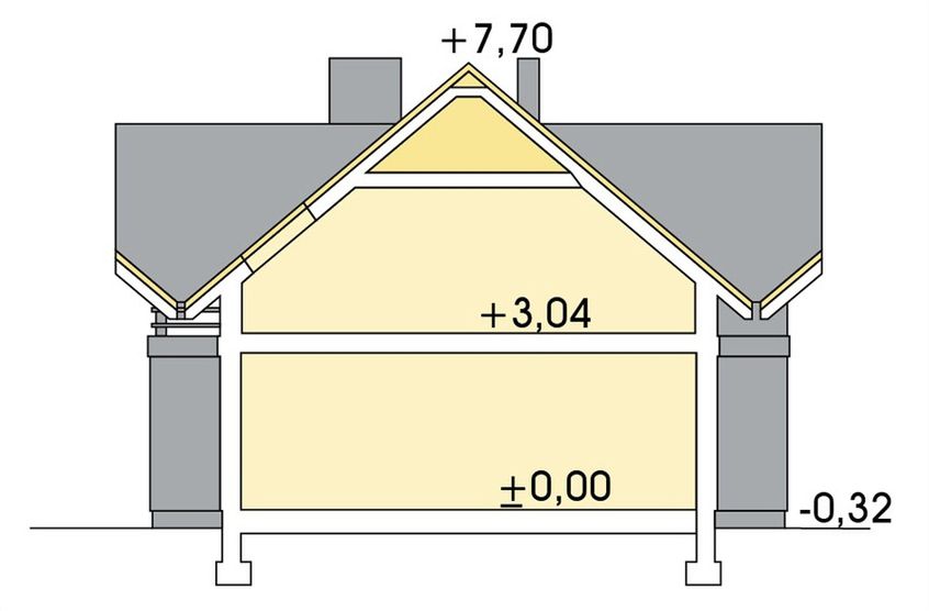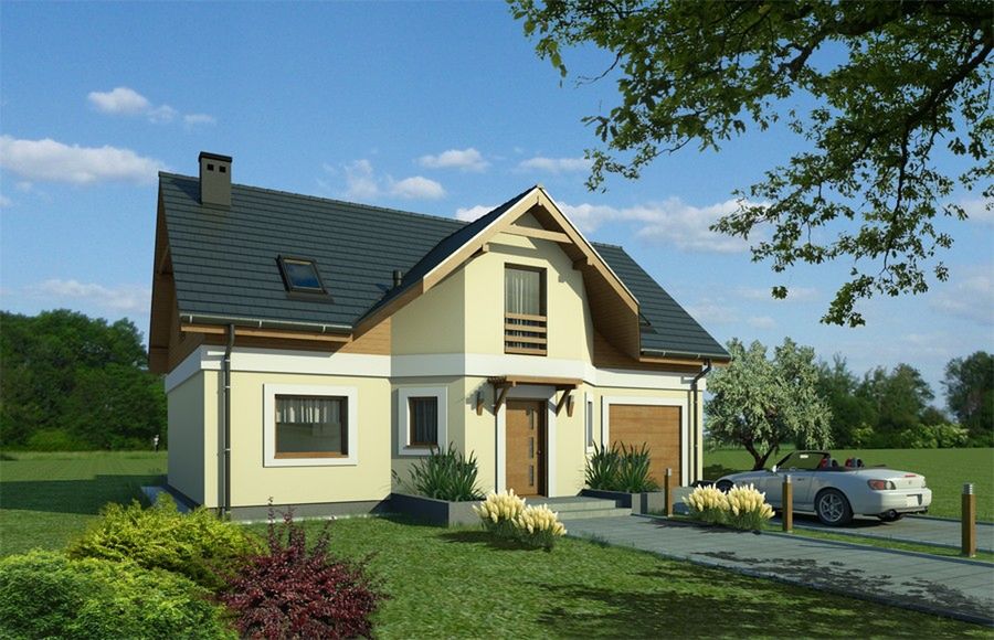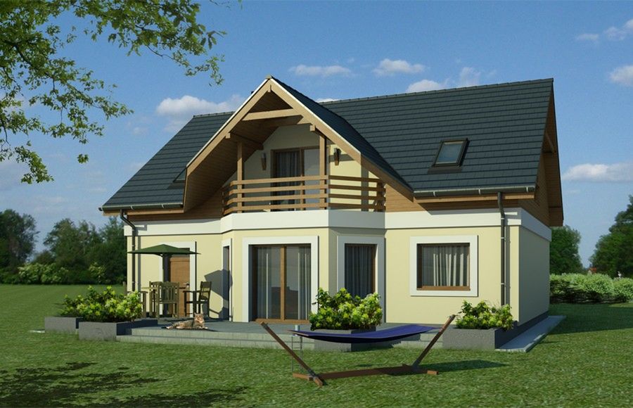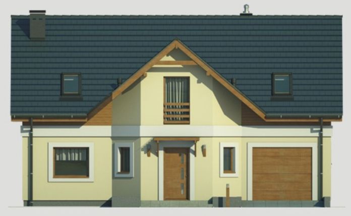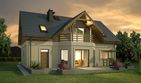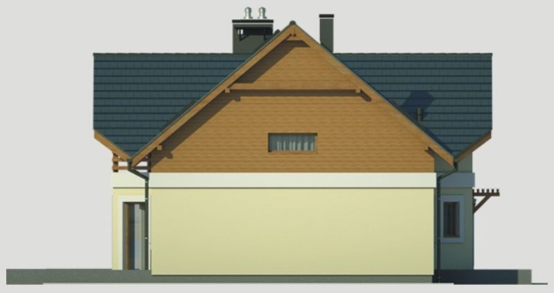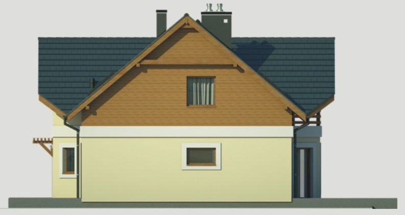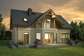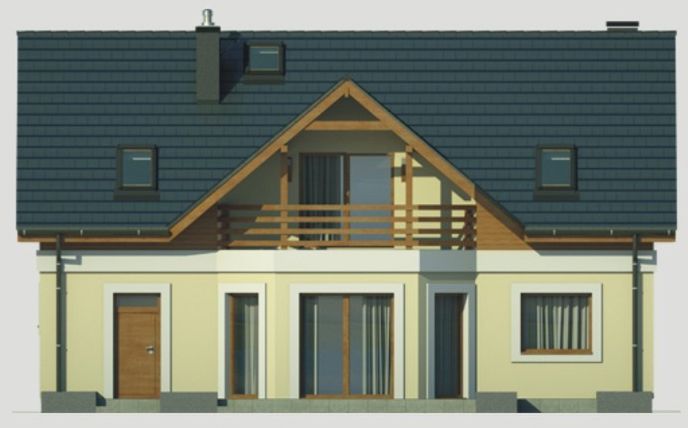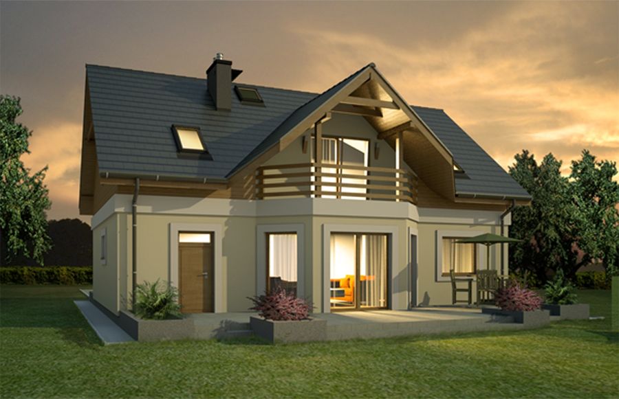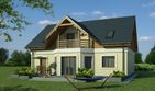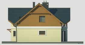 Graficzne opracowanie rzutów poglądowych widocznych na karcie projektu zostało wykonane przez Extradom.pl. Prezentowane przez Extradom.pl wizualizacje wykonane zostały przez autora projektu i należy poczytywać je jedynie za przykład i propozycję wykończenia, wizję architektoniczną autora projektu. Ostateczne wykończenie budynku może nastąpić na wiele sposobów. Szczegółowe rozwiązania zastosowane w oferowanej dokumentacji - w tym również ilość, lokalizacje i wygląd okien, drzwi, kominów - mogą w niewielkim stopniu różnić się od prezentowanej wizualizacji budynku.