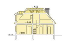 Graficzne opracowanie rzutów poglądowych widocznych na karcie projektu zostało wykonane przez Extradom.pl. Prezentowane przez Extradom.pl wizualizacje wykonane zostały przez autora projektu i należy poczytywać je jedynie za przykład i propozycję wykończenia, wizję architektoniczną autora projektu. Ostateczne wykończenie budynku może nastąpić na wiele sposobów. Szczegółowe rozwiązania zastosowane w oferowanej dokumentacji - w tym również ilość, lokalizacje i wygląd okien, drzwi, kominów - mogą w niewielkim stopniu różnić się od prezentowanej wizualizacji budynku.