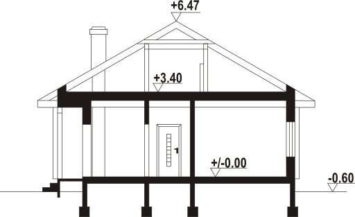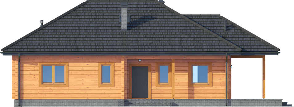 Graficzne opracowanie rzutów poglądowych widocznych na karcie projektu zostało wykonane przez Extradom.pl. Prezentowane przez Extradom.pl wizualizacje wykonane zostały przez autora projektu i należy poczytywać je jedynie za przykład i propozycję wykończenia, wizję architektoniczną autora projektu. Ostateczne wykończenie budynku może nastąpić na wiele sposobów. Szczegółowe rozwiązania zastosowane w oferowanej dokumentacji - w tym również ilość, lokalizacje i wygląd okien, drzwi, kominów - mogą w niewielkim stopniu różnić się od prezentowanej wizualizacji budynku.
