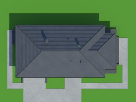 Graficzne opracowanie rzutów poglądowych widocznych na karcie projektu zostało wykonane przez Extradom.pl. Prezentowane przez Extradom.pl wizualizacje wykonane zostały przez autora projektu i należy poczytywać je jedynie za przykład i propozycję wykończenia, wizję architektoniczną autora projektu. Ostateczne wykończenie budynku może nastąpić na wiele sposobów. Szczegółowe rozwiązania zastosowane w oferowanej dokumentacji - w tym również ilość, lokalizacje i wygląd okien, drzwi, kominów - mogą w niewielkim stopniu różnić się od prezentowanej wizualizacji budynku.