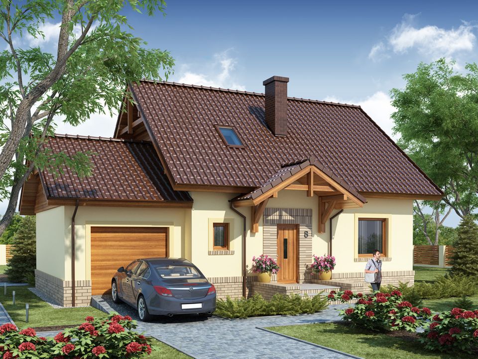 Zdecydowaliśmy się na realizację projektu domu Aspazja WRW1197, ponieważ przewidziano w nim rozwiązania, na jakich od początku nam zależało, a dodatkowo w całości przypadł nam do gustu. Przede wszystkim interesował nas garaż uwzględniony w bryle budynku oraz to, aby na parterze oprócz salonu znajdował się jeszcze jeden dodatkowy pokój.Cała inwestycja przebiegła pomyślnie i nie natrafiliśmy podczas niej na żadne nieprzewidziane sytuacje. Dokumentacja techniczna została jak najbardziej poprawnie sporządzona, a wszystkie prace udało się wykonać z łatwością. Zdecydowaliśmy się na budowę systemem gospodarczym. Nie zatrudnialiśmy firmy, a cały dom został w znacznej części zrealizowany przeze mnie oraz mojego tatę, który jest budowlańcem i na szczęście ze wszystkim świetnie sobie poradziliśmy. Co prawda, przy takim systemie budowa trwała nieco dłużej niż przy współpracy z jedną firmą, aczkolwiek pozwoliło to na spore oszczędności.Projekt nabyliśmy w sierpniu 2014 r. i niedługo po zakupie ruszyliśmy z pierwszymi pracami. Do nowego domu wprowadziliśmy się w marcu 2017 r., aczkolwiek obecnie jesteśmy jeszcze w trakcie wykańczania poddasza i póki co użytkujemy jedynie parter. Do wymurowania ścian użyliśmy gazobetonowych bloczków 24 cm, a strop na całej powierzchni wykonaliśmy w monolitycznej żelbetowej konstrukcji. Więźba została w całości odeskowana i pokryta papą, a następnie zastosowaliśmy na niej dachówkę. Trudno jest mi jednoznacznie ocenić poprawność kosztorysu, ponieważ dzięki dużemu nakładowi własnej pracy udało nam się znacznie obniżyć sugerowane w nim koszty. Dodatkowe oszczędności wynikały ponadto z faktu, iż wszystkie materiały nabywaliśmy w jedej hurtowni, co pozwoliło nam na uzyskanie korzystnych rabatów.Projekt domu Aspazja WRW1197 przewiduje całkowicie otwartą na salon kuchnię, aczkolwiek my postanowiliśmy nieco ją oddzielić. W miejscu pierwotnie przewidzianego barku wstawiliśmy krótką ściankę działową, tak iż kuchenne meble nie są widoczne ze strefy wypoczynkowej. Świetnym pomysłem było także lekkie podniesienie ścianki kolankowej. Dzięki temu poddasze zyskało na powierzchni i jest o wiele bardziej przestronne, a tym samym pokoje na tym poziomie są w pełni ustawne i wygodne. To rozwiązanie mogę szczerze polecić innym inwestorom. Układ pomieszczeń od początku nam odpowiadał, dlatego też wykonaliśmy go zgodnie z oryginalną wersją i w dalszym ciągu dostrzegam w domu same plusy. Być może jedynym drobnym mankamentem jest lokalizacja schodów na środku salonu, jednak z tego co zauważyłem jest to norma w większości tworzonych obecnie projektów.Jestem zadowolony z wyboru projektu domu parterowego z poddaszem użytkowym Aspazja WRW1197. Został świetnie opracowany i dobrze nam się z nim pracowało przy wykonywaniu prac budowlanych. Wnętrze jest funkcjonalne, a nowo powstały dom w całości spełnia nasze oczekiwania i jest dokładnie taki jak to sobie wyobrażaliśmy. Pozdrawiam.