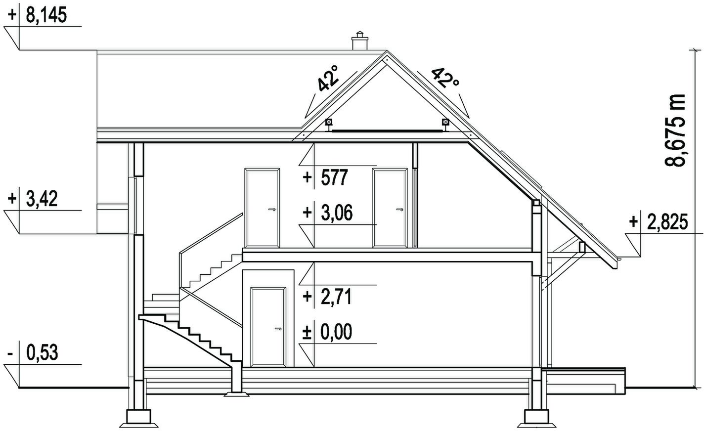 Dom zaprojektowano w technologii murowanej ze stropem żelbetowym. Dokumentacja zawiera podstawowe zestawienia meteriałów, w tym zestawienie stali zbrojeniowej, stolarki okiennej i drzwiowej oraz elementów więźby dachowej.