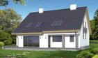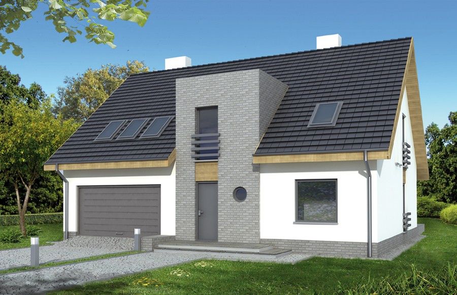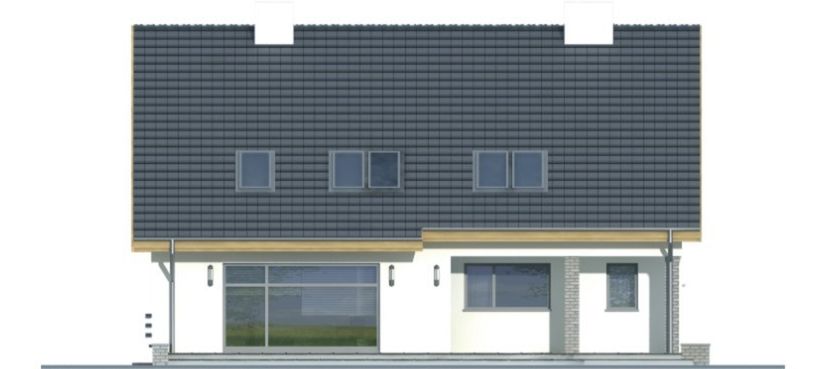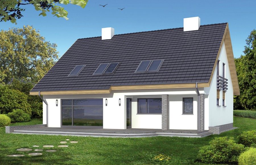 Graficzne opracowanie rzutów poglądowych widocznych na karcie projektu zostało wykonane przez Extradom.pl. Prezentowane przez Extradom.pl wizualizacje wykonane zostały przez autora projektu i należy poczytywać je jedynie za przykład i propozycję wykończenia, wizję architektoniczną autora projektu. Ostateczne wykończenie budynku może nastąpić na wiele sposobów. Szczegółowe rozwiązania zastosowane w oferowanej dokumentacji - w tym również ilość, lokalizacje i wygląd okien, drzwi, kominów - mogą w niewielkim stopniu różnić się od prezentowanej wizualizacji budynku.