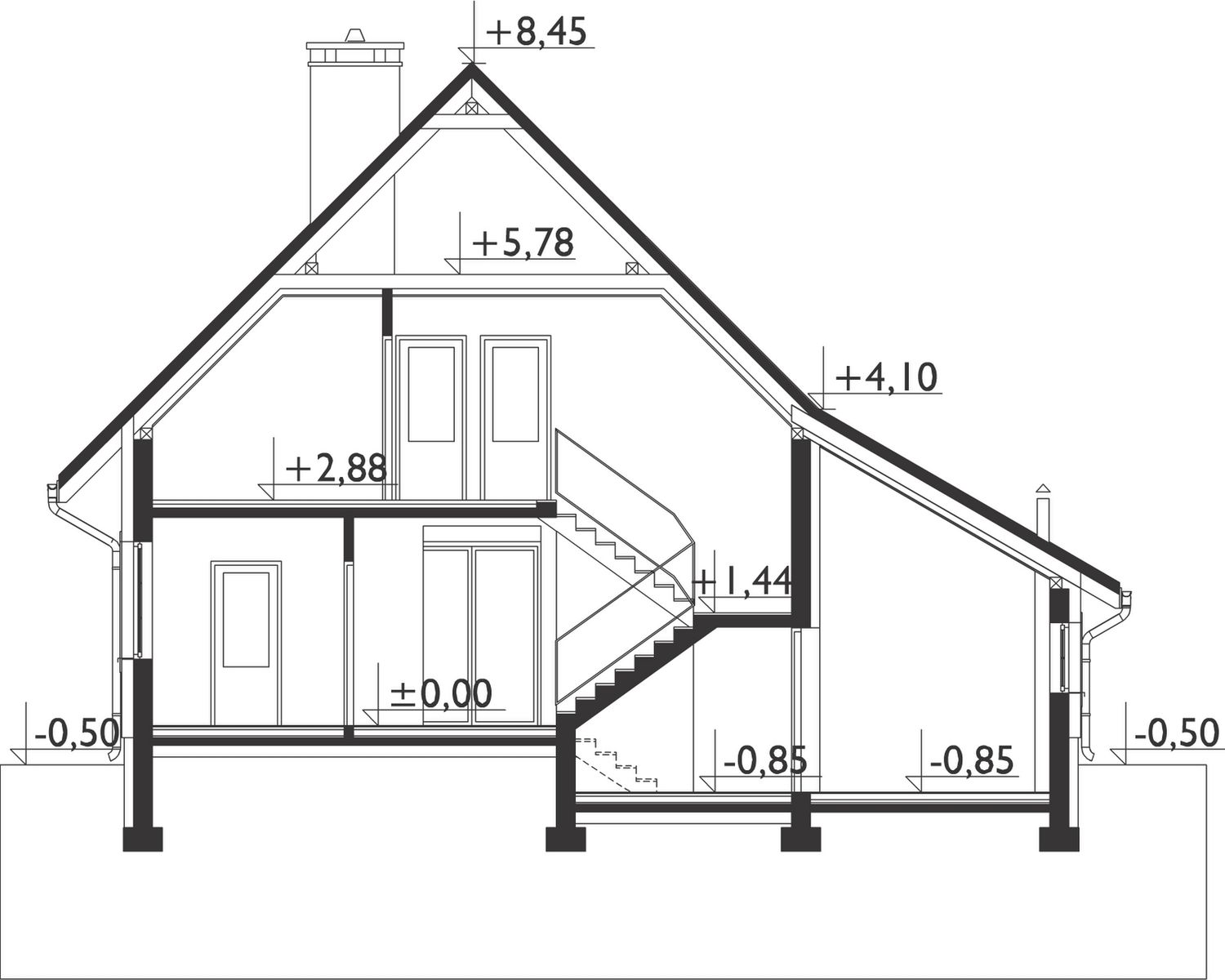 Technologia i konstrukcja: murowana – beton komórkowy. Ściany zewnętrzne: bloczki SOLBET Optimal gr. 24cm + docieplenie płyty FASROCK MAX gr.15cm. Ściany wewnętrzne: bloczki SOLBET Optimal gr.24cm i gr.12cm. Strop: żelbetowy. Konstrukcja dachu: drewniana, jętkowa. Rodzaj schodów: żelbetowe. Typ ogrzewania: kocioł na gaz. Aneks na paliwo stałe: dostępny (zapytaj o cenę). Pokrycie dachu: dachówka cementowe BRAAS. Elewacja: tynki silikonowe silikatowe oraz mineralne BOLIX.