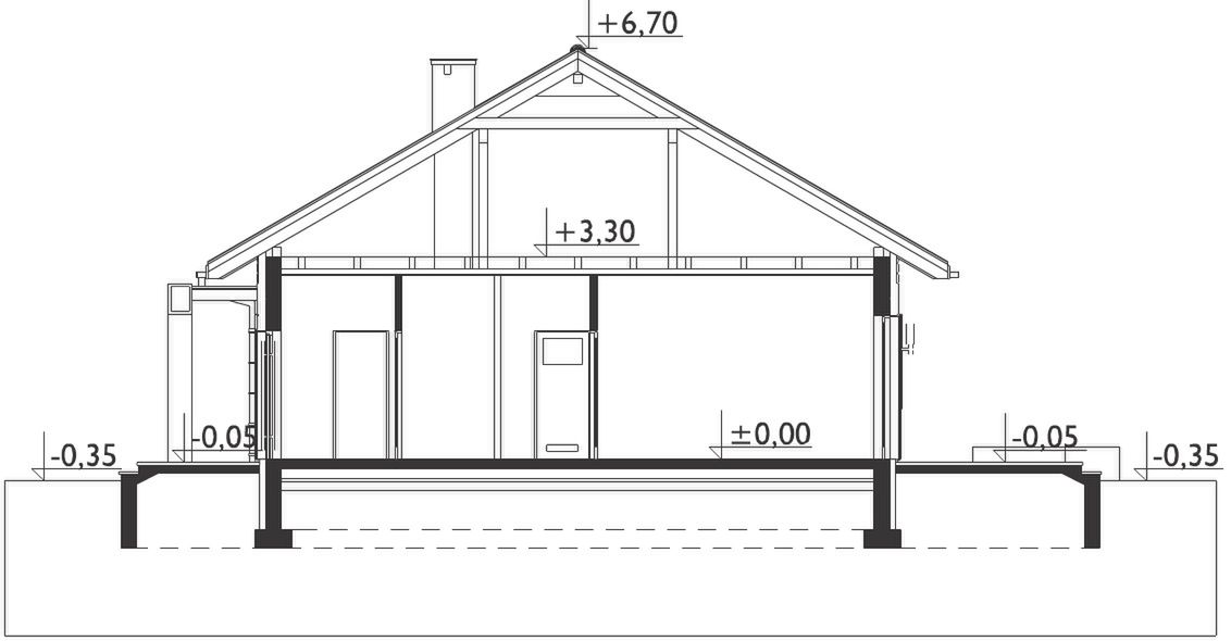 Wersja technologiczna: murowana - ceramika. Strop: lekki strop panelowy Smart firmy Konbet. Typ schodów: brak. Konstrukcja dachu: drewniana krokwiowo-jętkowa. Typ ogrzewania: Kocioł na gaz. Dostępna wersja z pompą ciepła: Tak. Wentylacja: mechaniczna. Ściany zewnętrzne: 25 cm ceramika. Ściany wewnętrzne: 25 cm ceramika. Ściany wewnętrzne działowe: 11 cm ceramika. Wentylacja: mechaniczna.