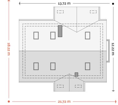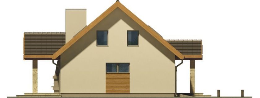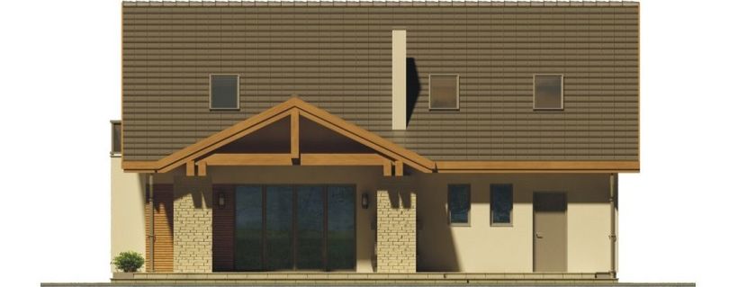 Graficzne opracowanie rzutów poglądowych widocznych na karcie projektu zostało wykonane przez Extradom.pl. Prezentowane przez Extradom.pl wizualizacje wykonane zostały przez autora projektu i należy poczytywać je jedynie za przykład i propozycję wykończenia, wizję architektoniczną autora projektu. Ostateczne wykończenie budynku może nastąpić na wiele sposobów. Szczegółowe rozwiązania zastosowane w oferowanej dokumentacji - w tym również ilość, lokalizacje i wygląd okien, drzwi, kominów - mogą w niewielkim stopniu różnić się od prezentowanej wizualizacji budynku.