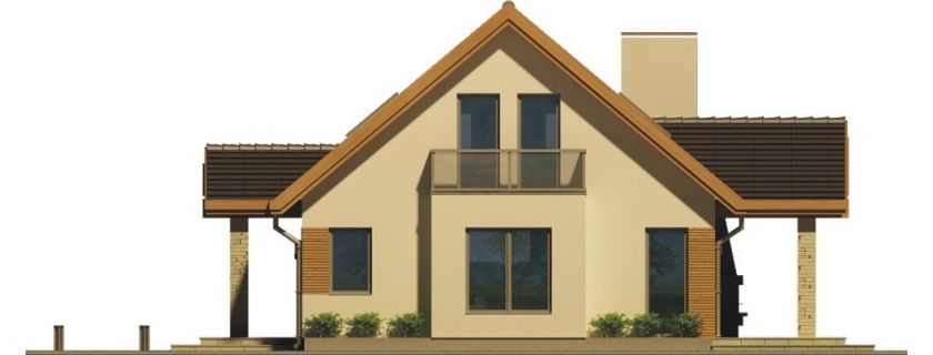 Graficzne opracowanie rzutów poglądowych widocznych na karcie projektu zostało wykonane przez Extradom.pl. Prezentowane przez Extradom.pl wizualizacje wykonane zostały przez autora projektu i należy poczytywać je jedynie za przykład i propozycję wykończenia, wizję architektoniczną autora projektu. Ostateczne wykończenie budynku może nastąpić na wiele sposobów. Szczegółowe rozwiązania zastosowane w oferowanej dokumentacji - w tym również ilość, lokalizacje i wygląd okien, drzwi, kominów - mogą w niewielkim stopniu różnić się od prezentowanej wizualizacji budynku.