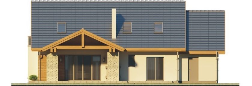Graficzne opracowanie rzutów poglądowych widocznych na karcie projektu zostało wykonane przez Extradom.pl. Prezentowane przez Extradom.pl wizualizacje wykonane zostały przez autora projektu i należy poczytywać je jedynie za przykład i propozycję wykończenia, wizję architektoniczną autora projektu. Ostateczne wykończenie budynku może nastąpić na wiele sposobów. Szczegółowe rozwiązania zastosowane w oferowanej dokumentacji - w tym również ilość, lokalizacje i wygląd okien, drzwi, kominów - mogą w niewielkim stopniu różnić się od prezentowanej wizualizacji budynku.