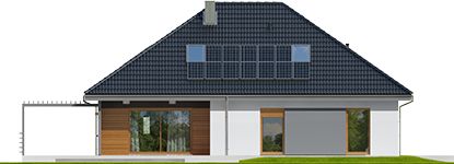 Graficzne opracowanie rzutów poglądowych widocznych na karcie projektu zostało wykonane przez Extradom.pl. Prezentowane przez Extradom.pl wizualizacje wykonane zostały przez autora projektu i należy poczytywać je jedynie za przykład i propozycję wykończenia, wizję architektoniczną autora projektu. Ostateczne wykończenie budynku może nastąpić na wiele sposobów. Szczegółowe rozwiązania zastosowane w oferowanej dokumentacji - w tym również ilość, lokalizacje i wygląd okien, drzwi, kominów - mogą w niewielkim stopniu różnić się od prezentowanej wizualizacji budynku.