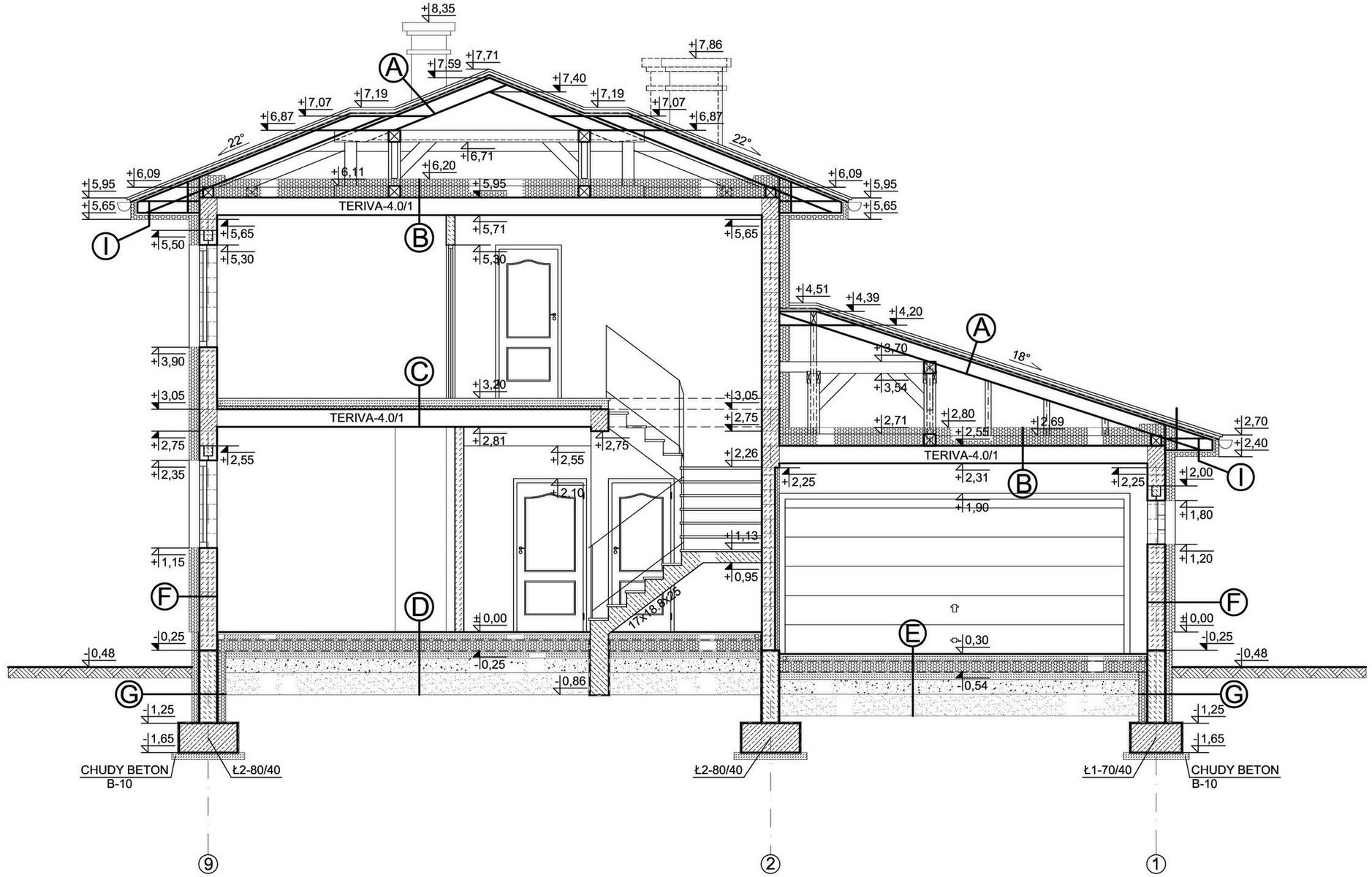 ściany zewnętrzne : ytong gr. 24,0cm + ocieplenie styropian 14cm. ściany wewnętrzne : silka gr. 24cm. strop : teriva. konstrukcja dachu : krokwiowo-płatwiowa. Dach: blachodachówka.