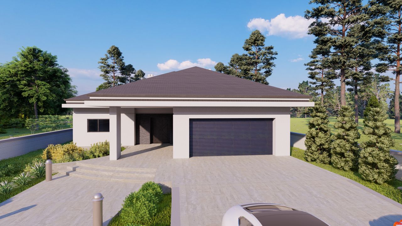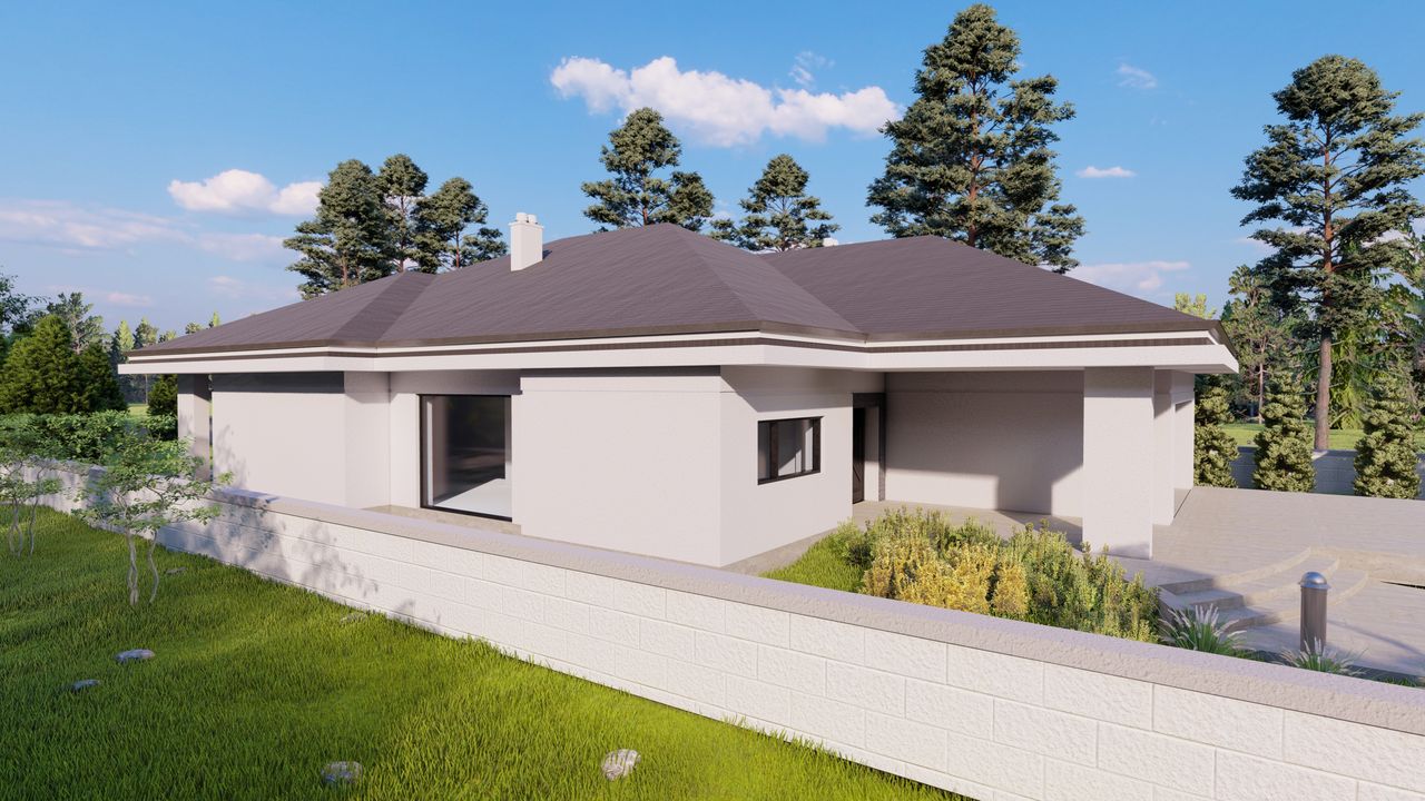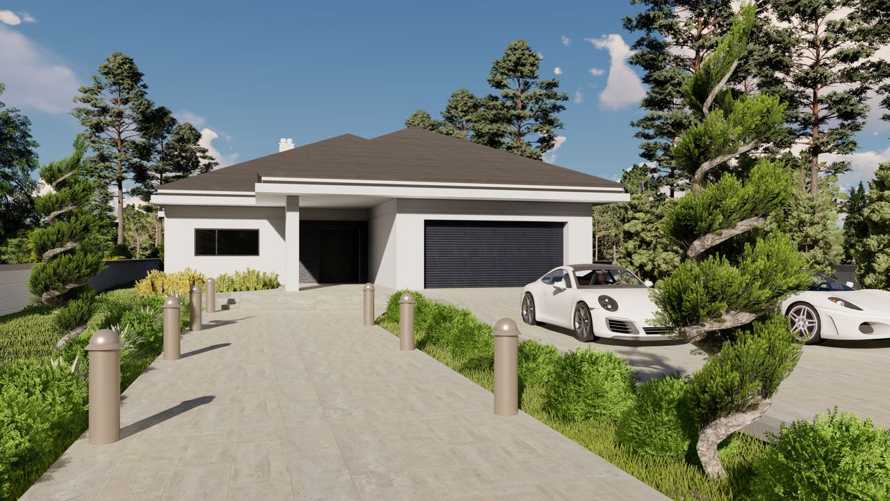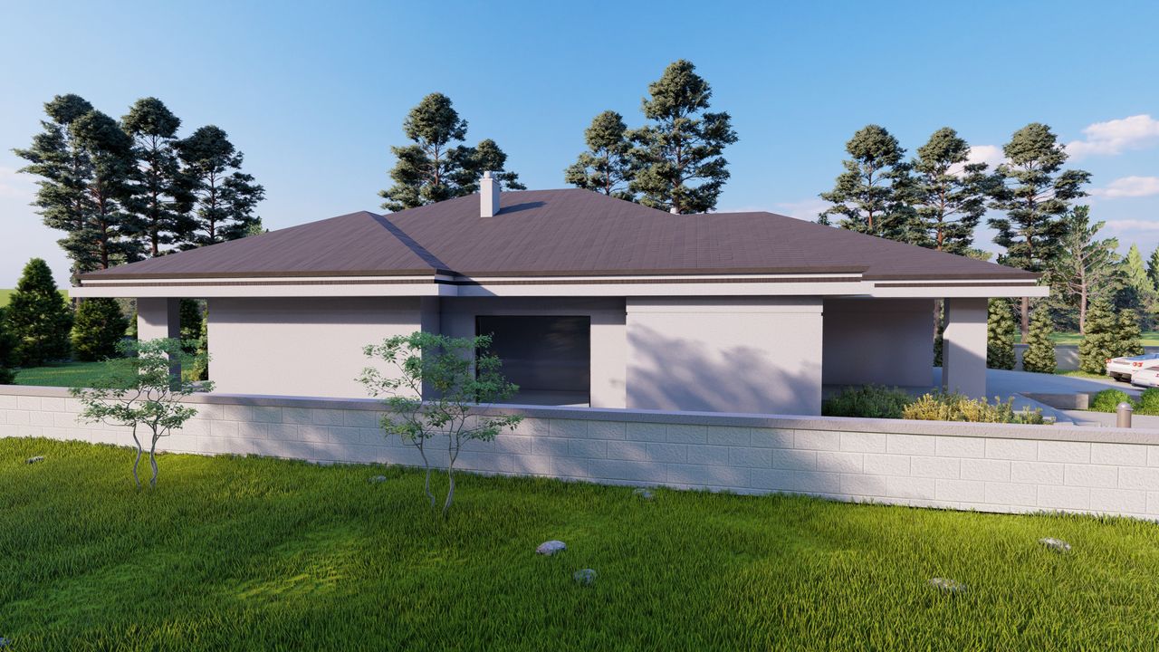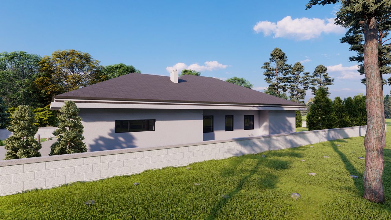 Graficzne opracowanie rzutów poglądowych widocznych na karcie projektu zostało wykonane przez Extradom.pl. Prezentowane przez Extradom.pl wizualizacje wykonane zostały przez autora projektu i należy poczytywać je jedynie za przykład i propozycję wykończenia, wizję architektoniczną autora projektu. Ostateczne wykończenie budynku może nastąpić na wiele sposobów. Szczegółowe rozwiązania zastosowane w oferowanej dokumentacji - w tym również ilość, lokalizacje i wygląd okien, drzwi, kominów - mogą w niewielkim stopniu różnić się od prezentowanej wizualizacji budynku.