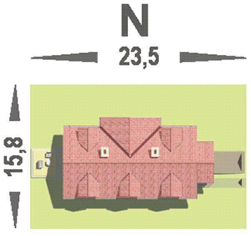Graficzne opracowanie rzutów poglądowych widocznych na karcie projektu zostało wykonane przez Extradom.pl. Prezentowane przez Extradom.pl wizualizacje wykonane zostały przez autora projektu i należy poczytywać je jedynie za przykład i propozycję wykończenia, wizję architektoniczną autora projektu. Ostateczne wykończenie budynku może nastąpić na wiele sposobów. Szczegółowe rozwiązania zastosowane w oferowanej dokumentacji - w tym również ilość, lokalizacje i wygląd okien, drzwi, kominów - mogą w niewielkim stopniu różnić się od prezentowanej wizualizacji budynku.