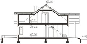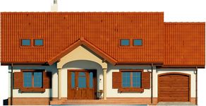 Graficzne opracowanie rzutów poglądowych widocznych na karcie projektu zostało wykonane przez Extradom.pl. Prezentowane przez Extradom.pl wizualizacje wykonane zostały przez autora projektu i należy poczytywać je jedynie za przykład i propozycję wykończenia, wizję architektoniczną autora projektu. Ostateczne wykończenie budynku może nastąpić na wiele sposobów. Szczegółowe rozwiązania zastosowane w oferowanej dokumentacji - w tym również ilość, lokalizacje i wygląd okien, drzwi, kominów - mogą w niewielkim stopniu różnić się od prezentowanej wizualizacji budynku.