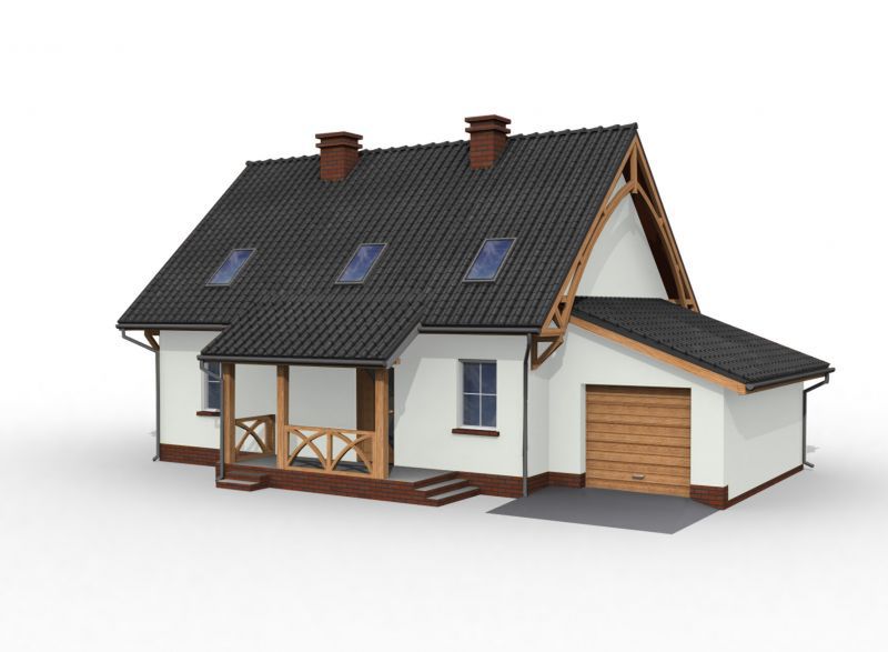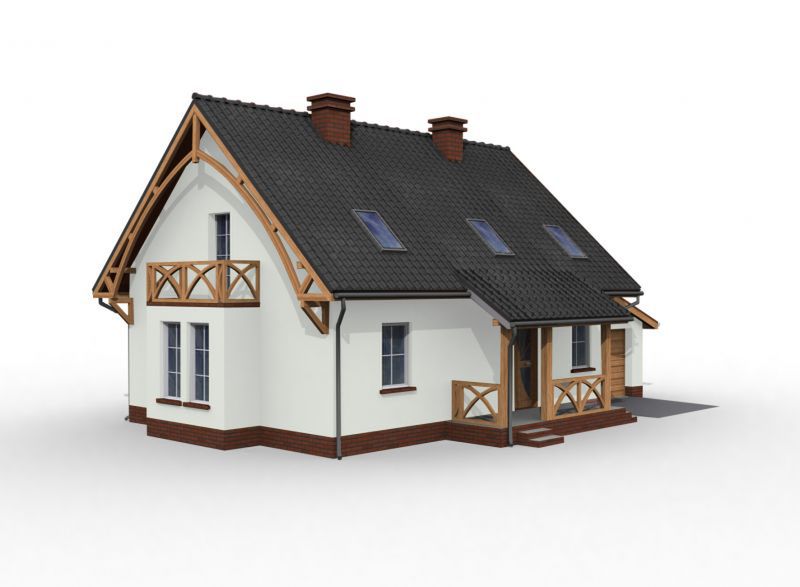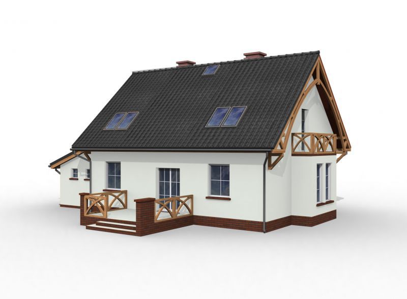 Graficzne opracowanie rzutów poglądowych widocznych na karcie projektu zostało wykonane przez Extradom.pl. Prezentowane przez Extradom.pl wizualizacje wykonane zostały przez autora projektu i należy poczytywać je jedynie za przykład i propozycję wykończenia, wizję architektoniczną autora projektu. Ostateczne wykończenie budynku może nastąpić na wiele sposobów. Szczegółowe rozwiązania zastosowane w oferowanej dokumentacji - w tym również ilość, lokalizacje i wygląd okien, drzwi, kominów - mogą w niewielkim stopniu różnić się od prezentowanej wizualizacji budynku.