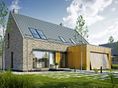 Graficzne opracowanie rzutów poglądowych widocznych na karcie projektu zostało wykonane przez Extradom.pl. Prezentowane przez Extradom.pl wizualizacje wykonane zostały przez autora projektu i należy poczytywać je jedynie za przykład i propozycję wykończenia, wizję architektoniczną autora projektu. Ostateczne wykończenie budynku może nastąpić na wiele sposobów. Szczegółowe rozwiązania zastosowane w oferowanej dokumentacji - w tym również ilość, lokalizacje i wygląd okien, drzwi, kominów - mogą w niewielkim stopniu różnić się od prezentowanej wizualizacji budynku.
