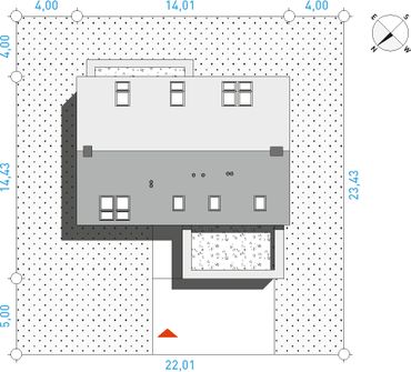 Konstrukcja: zgodna z normami EUROKOD. Fundamenty: tradycyjne ławy i stopy żelbetowe. Ściany: bloczek silikatowy + wełna mineralna na etapie adaptacji projektu istnieje możliwość zamiany bloczka silikatowego na inny materiał o podobnych parametrach wytrzymałosciowych, np. na pustak ceramiczny. Elewacja: cegła klinkierowa ręcznie formowana, laminat HPL laminat HPL wykorzystany jako materiał dekoracyjny można zamienić na etapie adaptacji projektu na inny, np. na deskę elewacyjną. Stropy: żelbetowe wylewane na etapie adaptacji projektu istnieje możliwość zmiany technologii stropu na gęstożebrowy lub prefabrykowany. Schody: konstrukcji lekkiej konstrukcja oraz materiały wykończeniowe schodów przewidziane do indywidualnej aranżacji. Możesz skorzystać z usług naszego Partnera. Formularz ofertowy dostępny w zakładce „kosztorys”. Dach: dachówka ceramiczna lub cementowa konstrukcja więźby przewidziana pod pokrycie ciężkie dla I strefy wiatrowej i II strefy śniegowej.