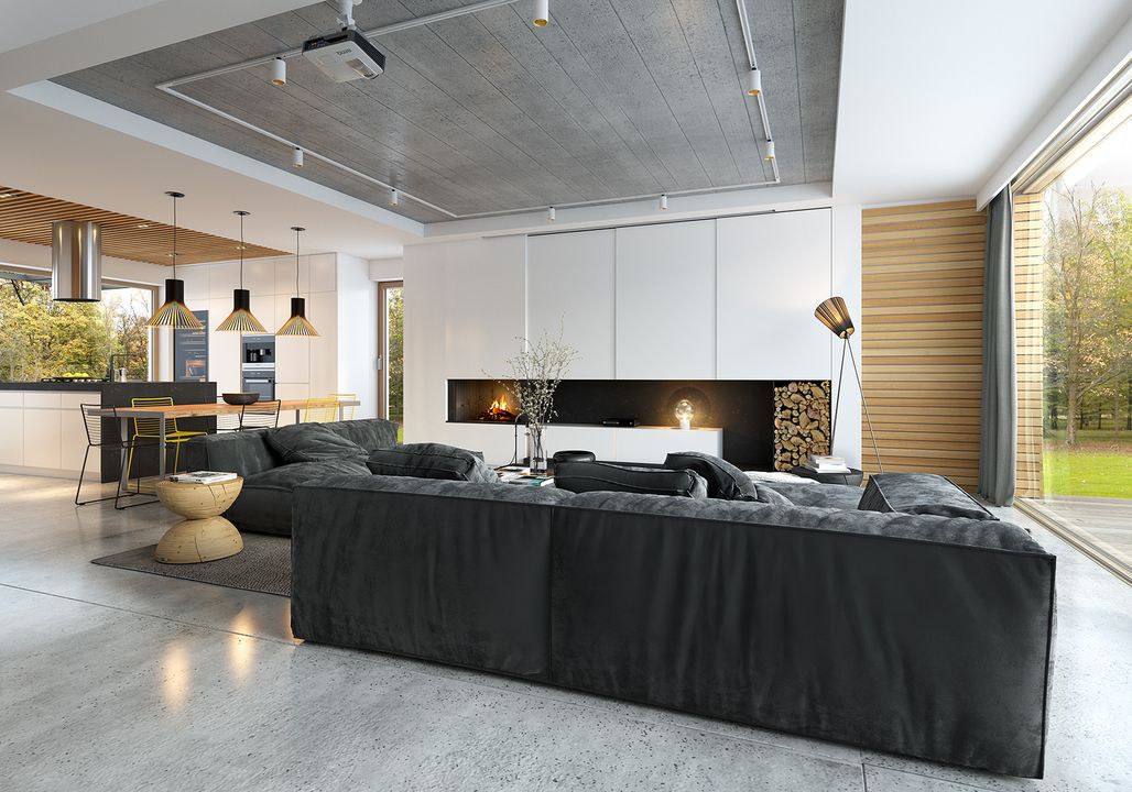 Graficzne opracowanie rzutów poglądowych widocznych na karcie projektu zostało wykonane przez Extradom.pl. Prezentowane przez Extradom.pl wizualizacje wykonane zostały przez autora projektu i należy poczytywać je jedynie za przykład i propozycję wykończenia, wizję architektoniczną autora projektu. Ostateczne wykończenie budynku może nastąpić na wiele sposobów. Szczegółowe rozwiązania zastosowane w oferowanej dokumentacji - w tym również ilość, lokalizacje i wygląd okien, drzwi, kominów - mogą w niewielkim stopniu różnić się od prezentowanej wizualizacji budynku.