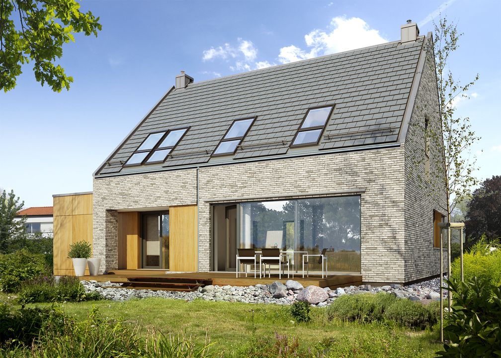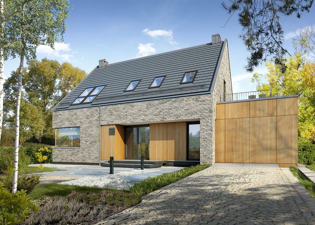 Konstrukcja: zgodna z normami EUROKOD. Fundamenty: tradycyjne ławy i stopy żelbetowe. Ściany: bloczek silikatowy + wełna mineralna na etapie adaptacji projektu istnieje możliwość zamiany bloczka silikatowego na inny materiał o podobnych parametrach wytrzymałosciowych, np. na pustak ceramiczny. Elewacja: cegła klinkierowa ręcznie formowana, laminat HPL laminat HPL wykorzystany jako materiał dekoracyjny można zamienić na etapie adaptacji projektu na inny, np. na deskę elewacyjną. Stropy: żelbetowe wylewane na etapie adaptacji projektu istnieje możliwość zmiany technologii stropu na gęstożebrowy lub prefabrykowany. Schody: konstrukcji lekkiej konstrukcja oraz materiały wykończeniowe schodów przewidziane do indywidualnej aranżacji. Możesz skorzystać z usług naszego Partnera. Formularz ofertowy dostępny w zakładce „kosztorys”. Dach: dachówka ceramiczna lub cementowa konstrukcja więźby przewidziana pod pokrycie ciężkie dla I strefy wiatrowej i II strefy śniegowej.
