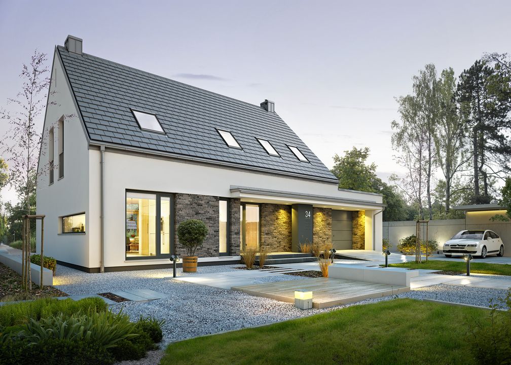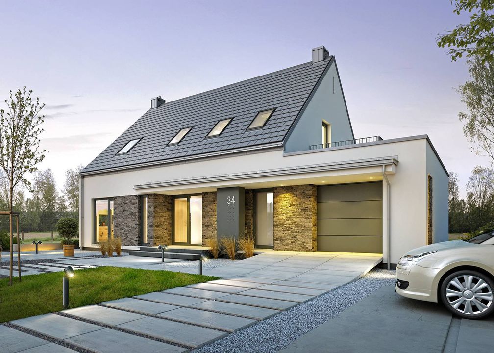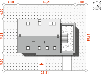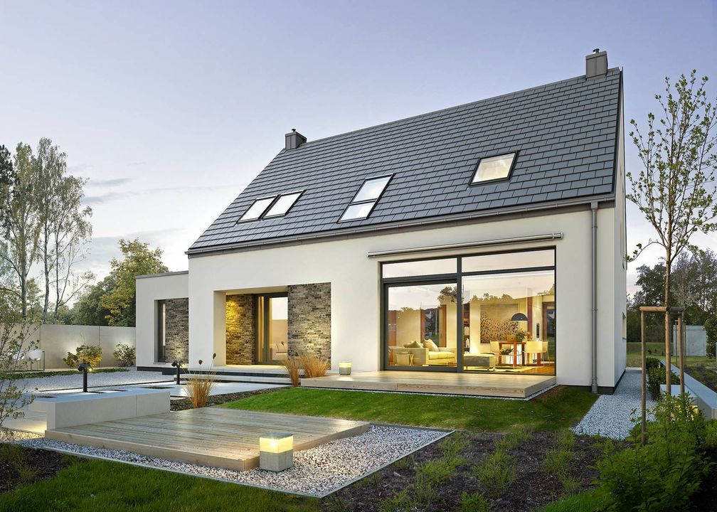 Konstrukcja: zgodna z normami EUROKOD. Fundamenty: tradycyjne ławy i stopy żelbetowe. Ściany: bloczek silikatowy + styropian na etapie adaptacji projektu istnieje możliwość zamiany bloczka silikatowego na inny materiał o podobnych parametrach wytrzymałosciowych, np. na pustak ceramiczny. Elewacja: tynk, płytka klinkierowa ręcznie formowana płytkę klinkierową wykorzystaną jako materiał dekoracyjny można zamienić na etapie adaptacji projektu na inny, np. na deskę elewacyjną. Stropy: żelbetowe wylewane na etapie adaptacji projektu istnieje możliwość zmiany technologii stropu na gęstożebrowy lub prefabrykowany. Schody: konstrukcji lekkiej konstrukcja oraz materiały wykończeniowe schodów przewidziane do indywidualnej aranżacji. Możesz skorzystać z usług naszego Partnera. Formularz ofertowy dostępny w zakładce „kosztorys”. Dach: dachówka ceramiczna lub cementowa konstrukcja więźby przewidziana pod pokrycie ciężkie dla I strefy wiatrowej i II strefy śniegowej.